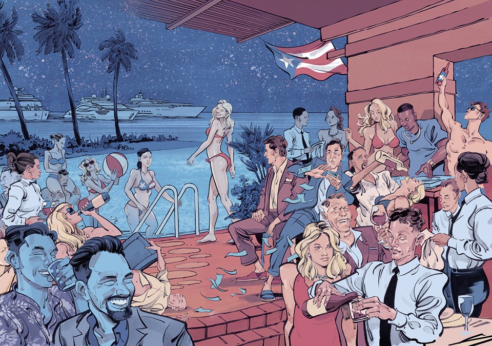 Светский раут с коктейлями начинается в пятницу вечером. Заводской склад, переделанный в арт-галерею. Старый городок Сан-Хуан. Список гостей конфиденциален: в нем сотни богачей, уехавших в налоговую эмиграцию в Пуэрто-Рико; большинство из них неохотно афишируют этот факт. С 2012 года, когда в стране приняли так называемый «Акт 22», более полутора тысяч граждан США стали жителями этого островка в Атлантическом океане. Суть закона — мечта для нуворишей со всего света — состоит в том, что любой оседлый пуэрториканец не обязан платить острову ни цента в качестве налогов (в Штатах их размер — от 10 до 39 процентов). Стоило «Акту 22» лечь под президентскую печать, как из родины Дженнифер Лопес Пуэрто-Рико превратился в главный офшор Америки.