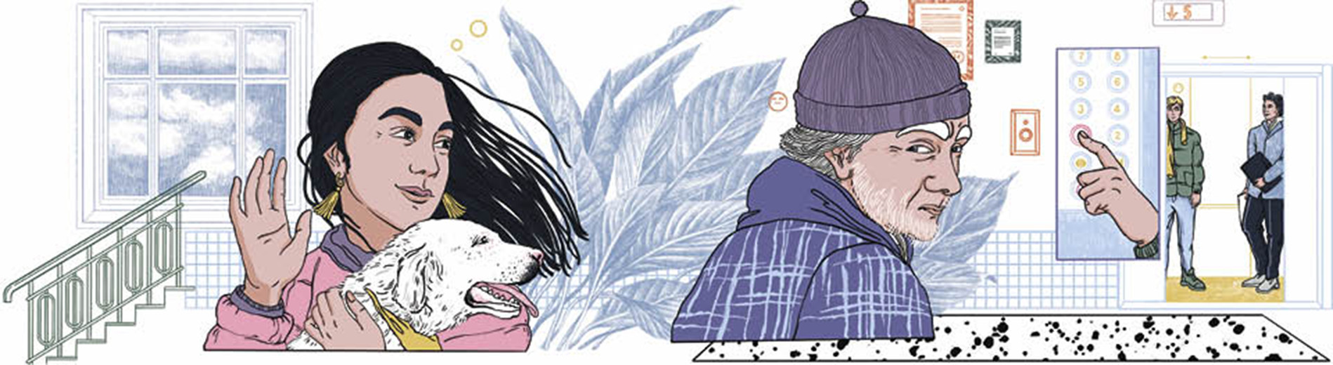 Как правило, близкое знакомство с теми, кто живет рядом, происходит в момент бытовых катастроф — кто‑то кого‑то заливает, что‑то горит или нечто общее серьезно сломалось, будь то стояк или электричество. Или во время возникновения низовых гражданских инициатив — уборки прилегающих территорий, разного рода политической агитации или организации какой‑то необходимой взаимопомощи во время чрезвычайных ситуаций вроде эпидемии коронавируса. Но кажется, что большей частью соседи ассоциируются с чем‑то неприятным, чем‑то странным, сопровождающим твою жизнь и внезапно вмешивающимся в нее — и на вопрос, как быть хорошим соседом, чаще всего хочется ответить: «Просто перестаньте, пожалуйста, сверлить».