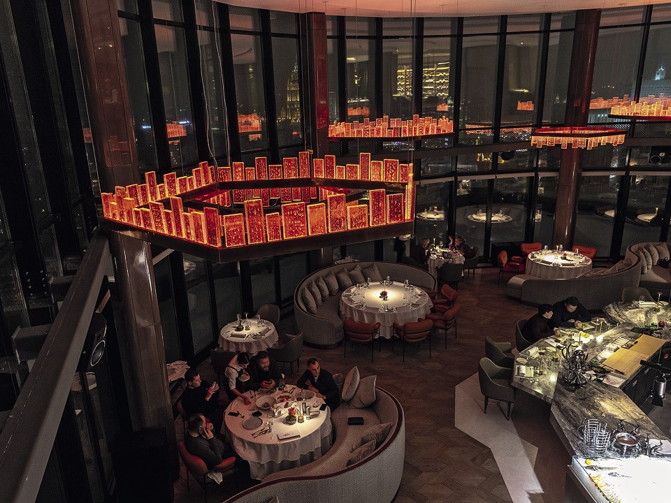 Слухи о том, что Борис Зарьков строит грандиозный ресторан с морепродуктами, начали ходить, едва прошла первая слава его флагманского проекта — White Rabbit. «Сахалин» менял локацию, пропадал и вновь появлялся на радарах ресторанных критиков. Наконец, этой зимой вавилонский долгострой завершился… оглушительным успехом. На крыше отеля Azimut выстроили двухэтажный стеклянный купол: с огромной барной стойкой, открытой кухней, ледяной витриной и гигантскими аквариумами.