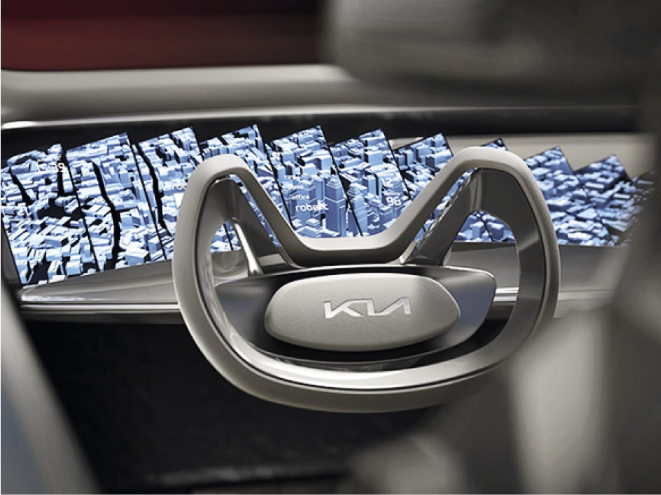 Этот концепт-кар войдет в историю благодаря интерьеру: на его передней панели 21 тачскрин. Видимо, так компания Kia надеется завлечь за руль стремительно теряющее интерес к автомобилям поколение Z. Кроме экранов салон Imagine удивляет необычной формой руля и педалями, которые прячутся в пол, когда зажигание выключено. Также концепт-кар