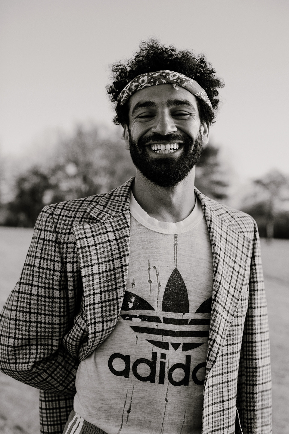 И вот двери бальной залы распахиваются и входит Салах. На нем черное худи Haculla, джинсы и кроссовки MSGM, а вокруг — рой из участников этих съемок, каждый из которых пытается сделать селфи. Мохамед лишь улыбается и оглядывается по сторонам. Но в дело вмешивается агент, и футболиста выводят в соседний зал. Засунув руки в карманы худи, он сидит передо мной, и на лице его улыбка в миллион люменов. Салах привык к всеобщему обожанию. «Это то, чего я добивался, — говорит он. — Но иногда люди перебарщивают».