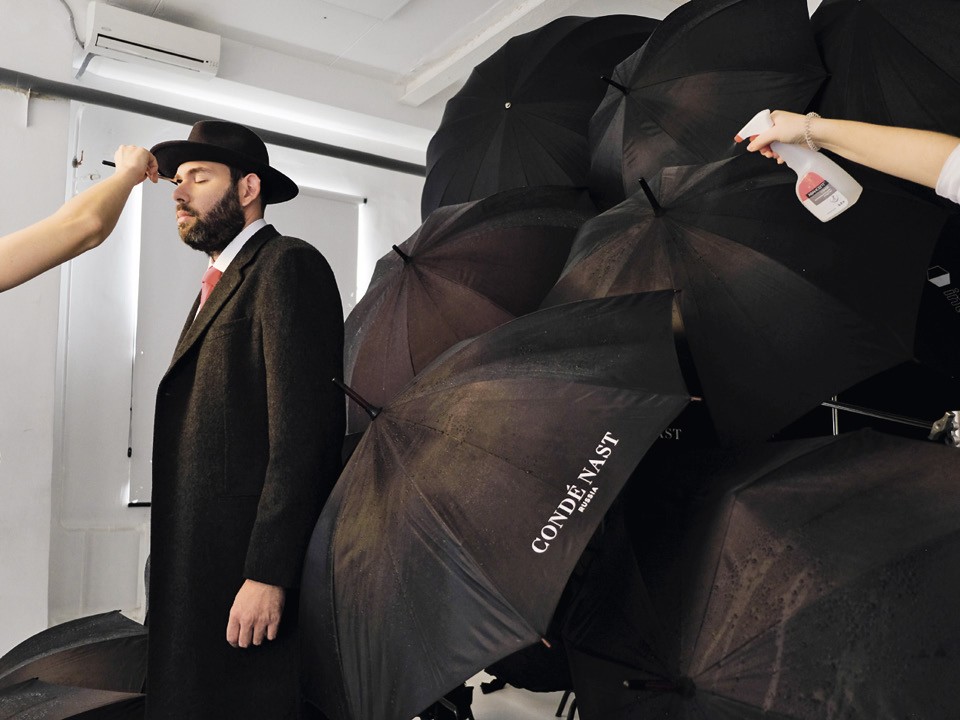 Ко встрече с Семеном Слепаковым каждый в редакции GQ готовился по-своему. Арт-директор Дмитрий Гиенко надувал разноцветные шарики, фотограф Данил Головкин возводил пирамиды из зонтов, заместитель главного редактора Антон Иванов наперегонки с ассистентом редакции Мариной Мнацакановой собирали модели Останкинской телебашни, а продюсер Настя Чибисова заказывала десерты в виде советских телевизоров. Семен оценил наши старания: за 30 секунд уничтожил башни, съел телевизор,