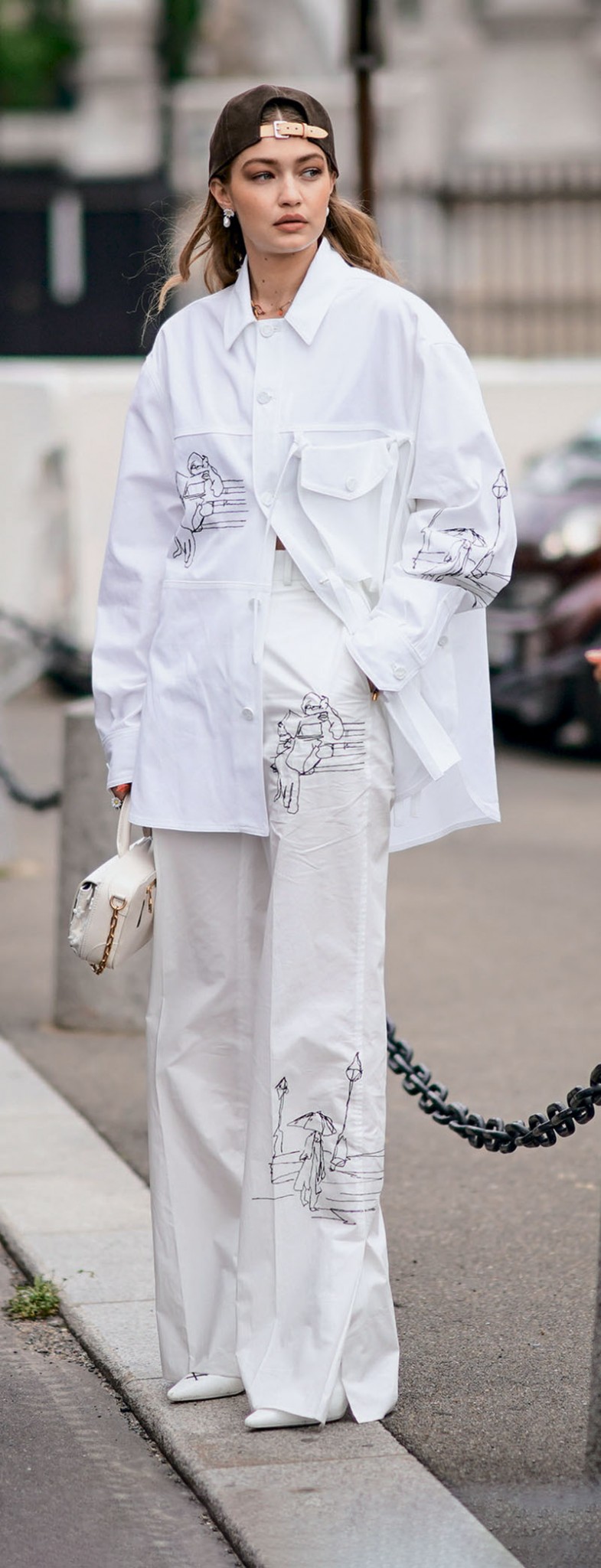 Если вы думаете, что с белой рубашкой давно все понятно, звездные трендсеттеры готовы убедить вас в обратном: здесь как раз есть где развернуться! Оригинальнее всех выступила Джиджи Хадид: на днях супермодель пришла на мужской показ Louis Vuitton в объемном