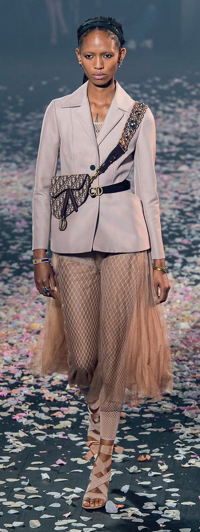 Все началось с шоу Dior. Мария Грация Кьюри продолжает исследовать тему феминизма – на этот раз через современный танец. Показ превратился в полноценный перформанс: проход моделей сопровождало выступление танцоров (в костюмах Dior, разумеется), все действие проходило под дождем из лепестков. Впрочем, антураж не помешал рассмотреть и саму коллекцию, в которой преобладали нюдовые оттенки и летящие юбки, отсылающие к облачению балерин.