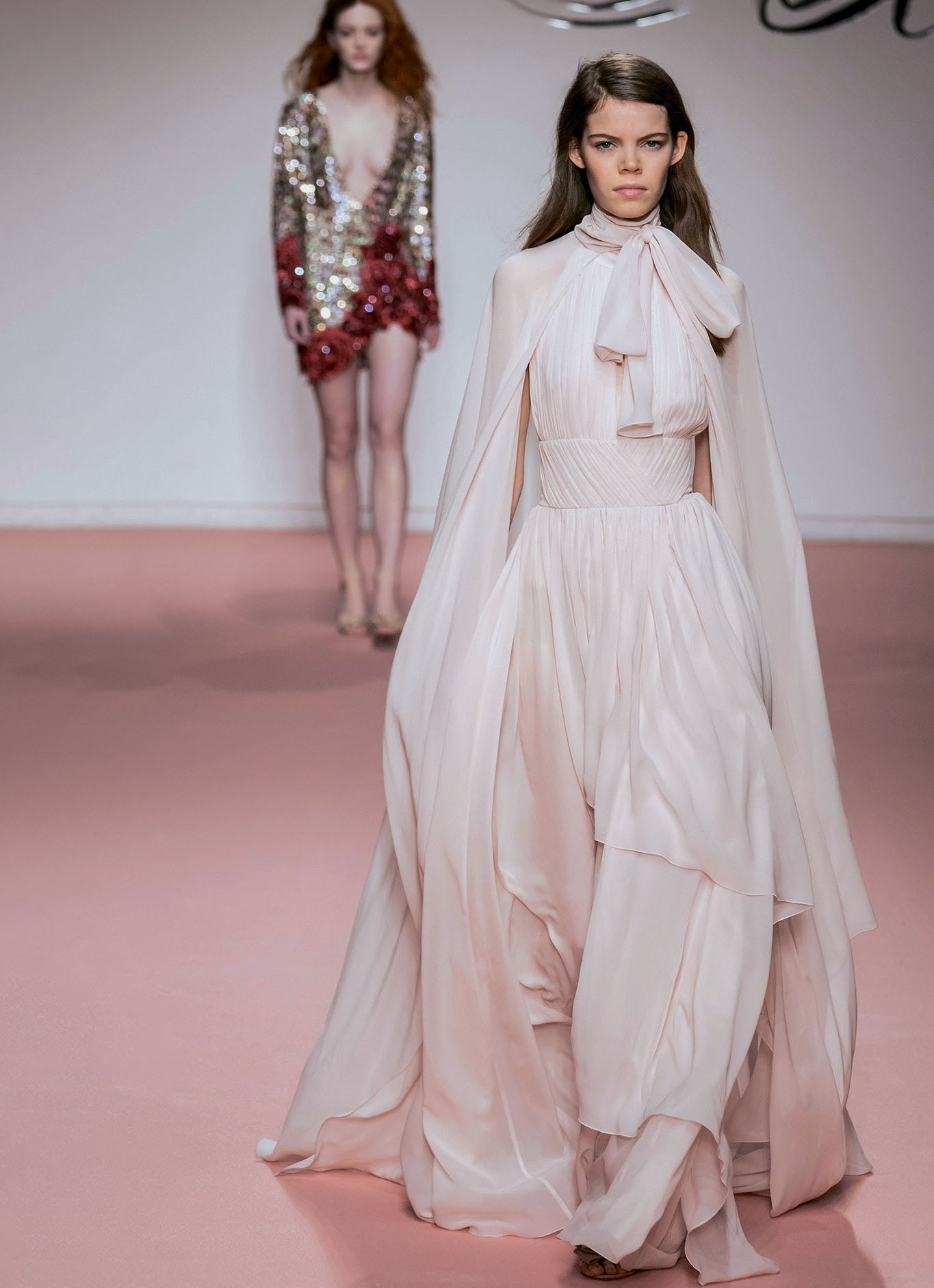 Началось все с шоу Alberta Ferretti. Было много белого и блестящего, элементов милитари и Дикого Запада: вестерн, который покорил нас прошлой осенью, не исчезнет и в следующем году.
