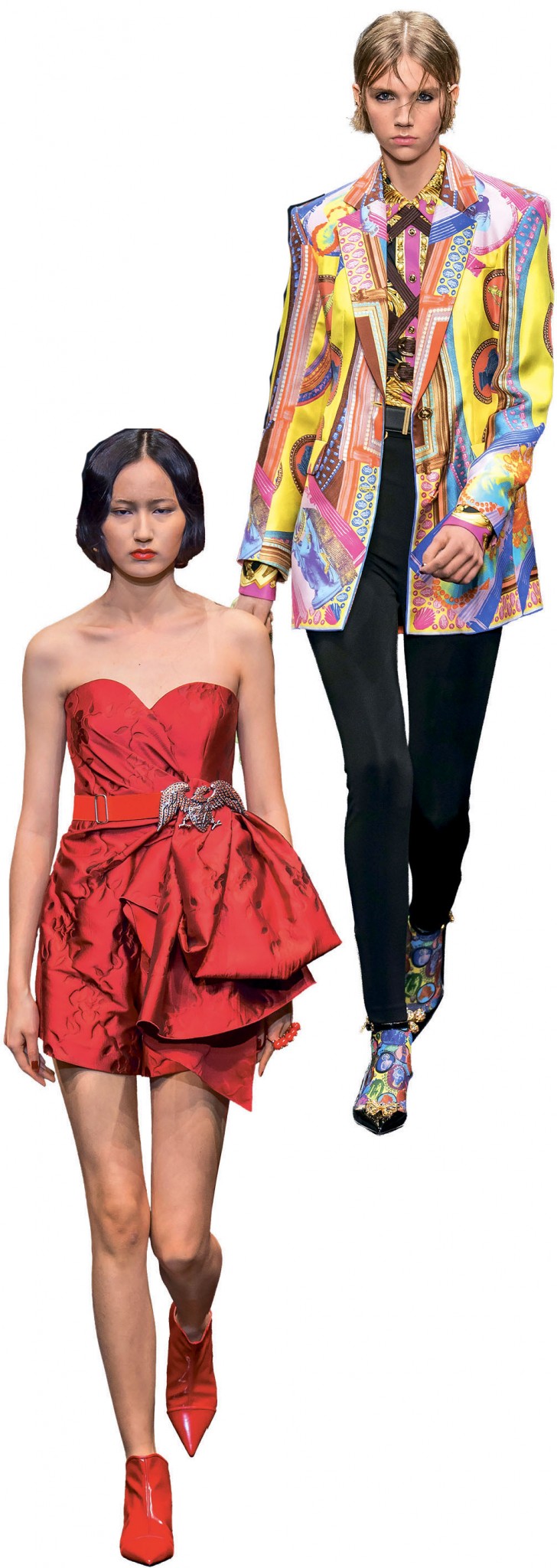 К слову, принтов не пожалели и Versace. Еще на шоу Донателлы Версаче, у которой что ни показ, то просто праздник жизни какой-то, правили бал облегающие силуэты, вырезы и смелые сочетания цветов.