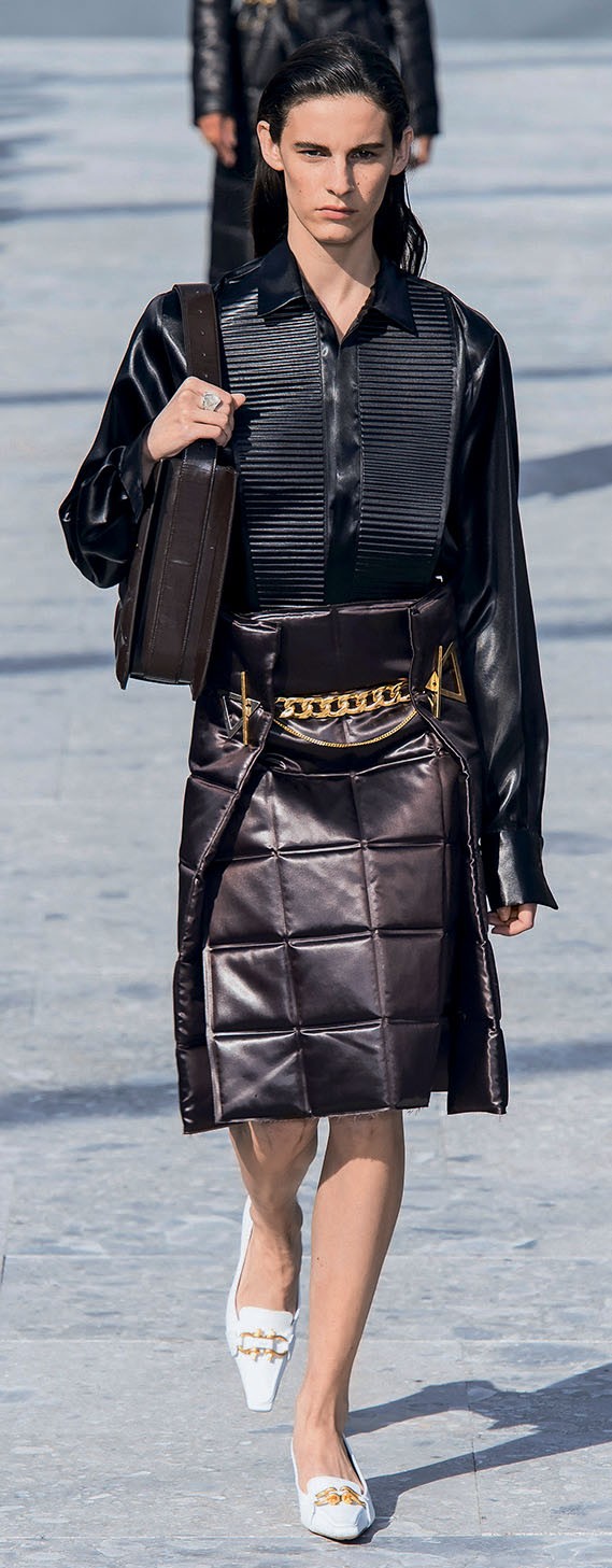 С особым интересом ждали дефиле Bottega Veneta – все гадали, как изменится бренд после того, как его покинул Томас Майер. Новый креативный директор, британец Дэниел Ли, до этого успел поработать в нескольких именитых домах, в том числе и в Celine эпохи Фиби Фило, – конечно, ожидания модной публики были высоки. И Ли не разочаровал: в Bottega Veneta явно начинается новая эра, не отрицающая, впрочем, классические коды марки. А наряды и аксессуары из стеганой кожи хочется добавить в гардероб, не дожидаясь осени.