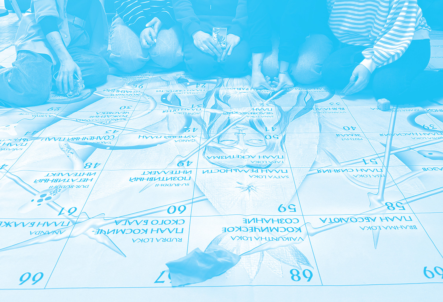 С собой необходимо принести тетрадку для записей от руки и значимое украшение или вещь, которая становится твоей фишкой на поле. Игра начинается с того, что нужно в нее зайти. Для этого необходимо сформулировать запрос по одной из трех сфер, которая на данный момент беспокоит больше всего, – «Отношения», «Финансы» и «Здоровье» – и выкинуть кость с цифрой 6. Благодаря наводящим вопросам проводника формулировки могут видоизменяться, направляя участника на верный путь. Мне удалось зайти в игру на втором круге, в то время как один из нас выкинул шестерку лишь за пять минут до завершения практики. Но это оказалось даже интересно, ведь все остальное время он также копался в себе, пытаясь осознать свои истинные мысли, с которыми пришел на игру.