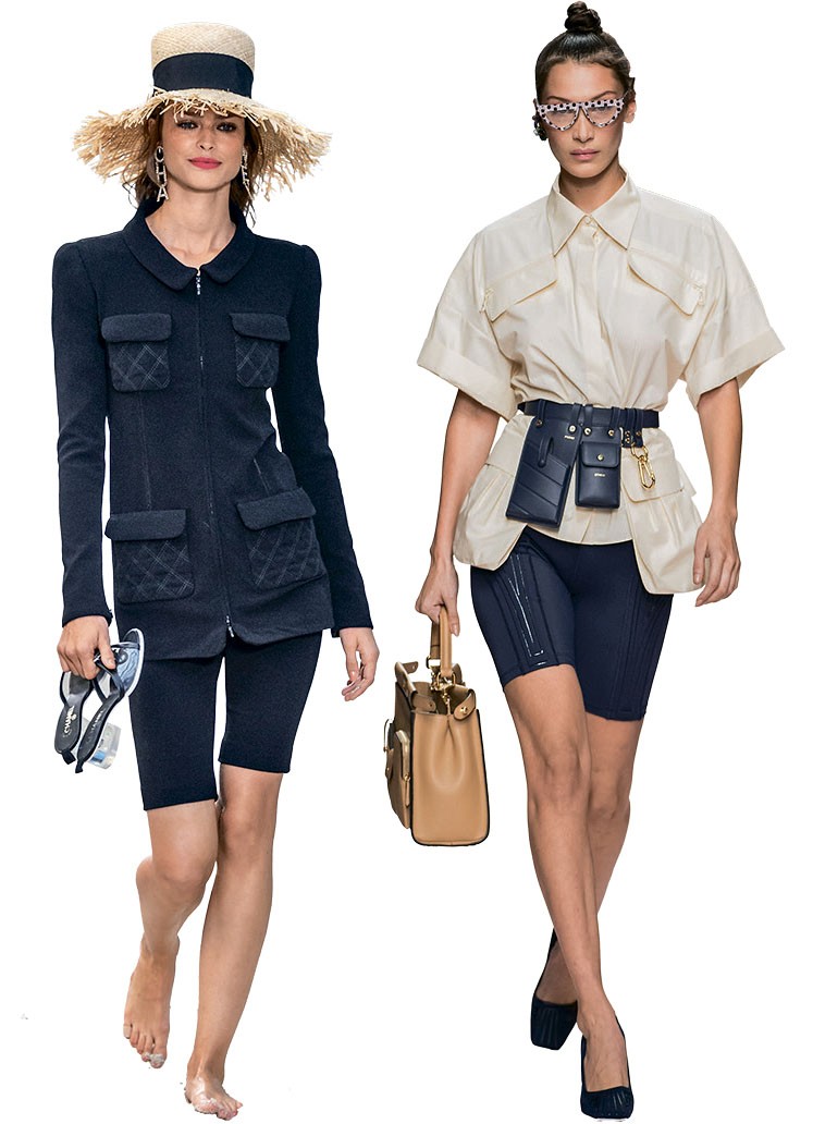 Когда подиумы весенне-летних показов заполонили велосипедки, многие гадали: неужели и в реальной жизни люди начнут выходить в свет так, будто забыли переодеться после тренировки по сайклингу? Похоже, что да! У всех свой подход к этим шортам: модель Ларсен Томпсон, к примеру, невозмутимо разгуливает в них по Лос-Анджелесу, сочетая с жакетом и туфлями на высоком каблуке. Стоит попробовать!