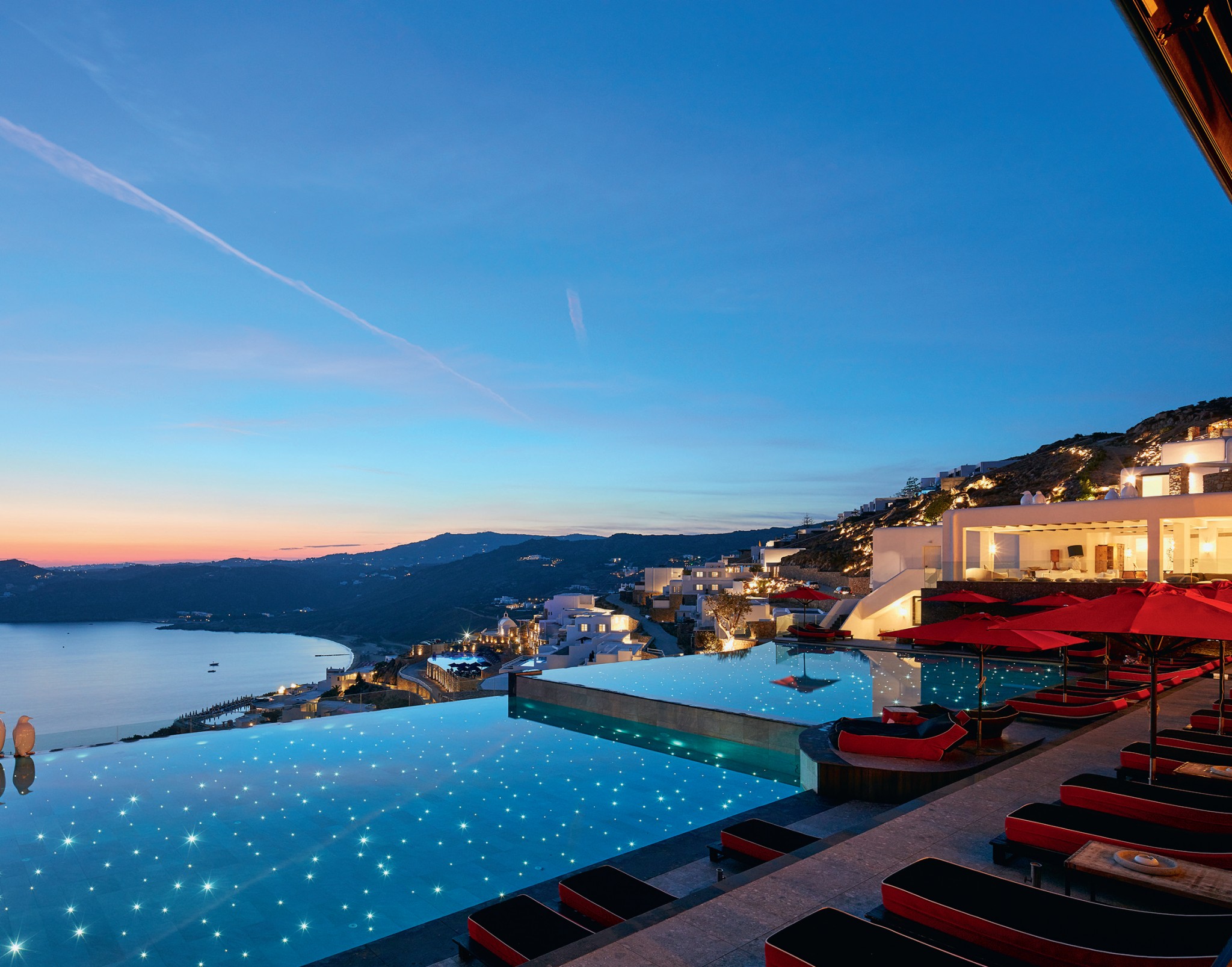 Хоть этот остров и известен главным образом пляжными вечеринками, уединенных мест здесь есть немало. Например, пляж Элиа – самое длинное песчаное побережье Миконоса, на котором расположились три отеля Myconian Collection. Остановитесь в дизайнерском Myconian Avaton, что возвышается над пляжем: он буквально вписан в скалы. Все номера – сьюты или виллы. В каждом – балконы с панорамными видами на море и террасы с огромными бассейнами, которые вечером из-за подсветки кажутся усыпанными звездами. Несмотря на такое расположение, к пляжу можно спуститься бувально за пять минут. Но если не хочется идти пешком, вас отвезут туда на электрокаре. У отеля своя территория около моря, так что большого скопления людей здесь точно не будет.