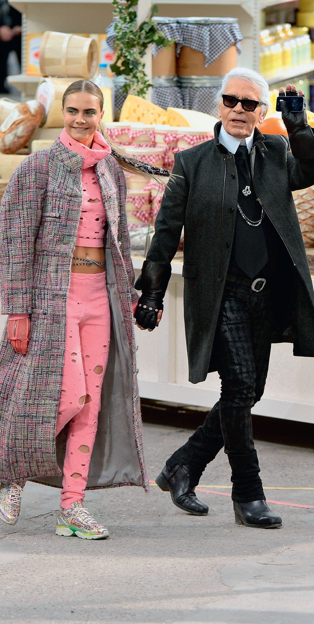 Карл Лагерфельд и Кара Делевинь на показе Chanel осень – зима 2014/15