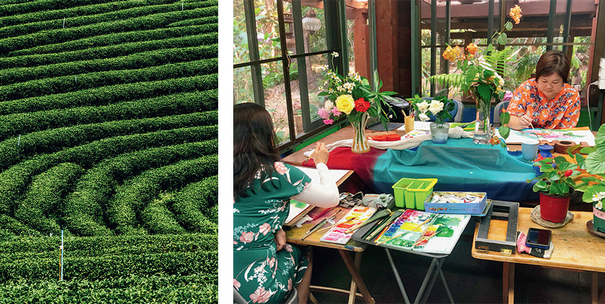После дамбы я настоятельно рекомендую навестить художницу Энг-он Хомсуван, владелицу Eng-Ka Gallery. К ней можно заглянуть на пару часов, а можно остаться на ночь в одном из гостевых домиков. Когда я впервые оказалась в гостях у Энг-он, еще был жив ее муж – и они принимали меня как любимую внучку. Интерьер домика, кстати, полностью соответствует имиджу сказочной бабушки – ажурные оборки, деревянные рамы, выкрашенные в разные цвета, картины авторства хозяйки, дворик с цветами в горшках… Eng-Ka Gallery находится в фантастически красивом саду, помимо хозяйского и гостевых домов, здесь есть собственно галерея, уютное кафе с магазином нетривиальных сувениров, небольшое озерцо с лодочкой – и куча всяких интересных построек и деталей. Если вам нужна перезагрузка, приезжайте с ночевкой. Вас уютно устроят, напоят и накормят, а утром усадят пить кофе из небольшой фарфоровой чашки. Мне, кстати, недавно повезло: я попала на мастер-класс художницы, который проходил на веранде, утопающей в цветах. Сестра хозяйки угощала запеченной тыквой с тофу, а вокруг хохотали пожилые подружки, щедрыми мазками рисующие фирменные цветы Энг-он.