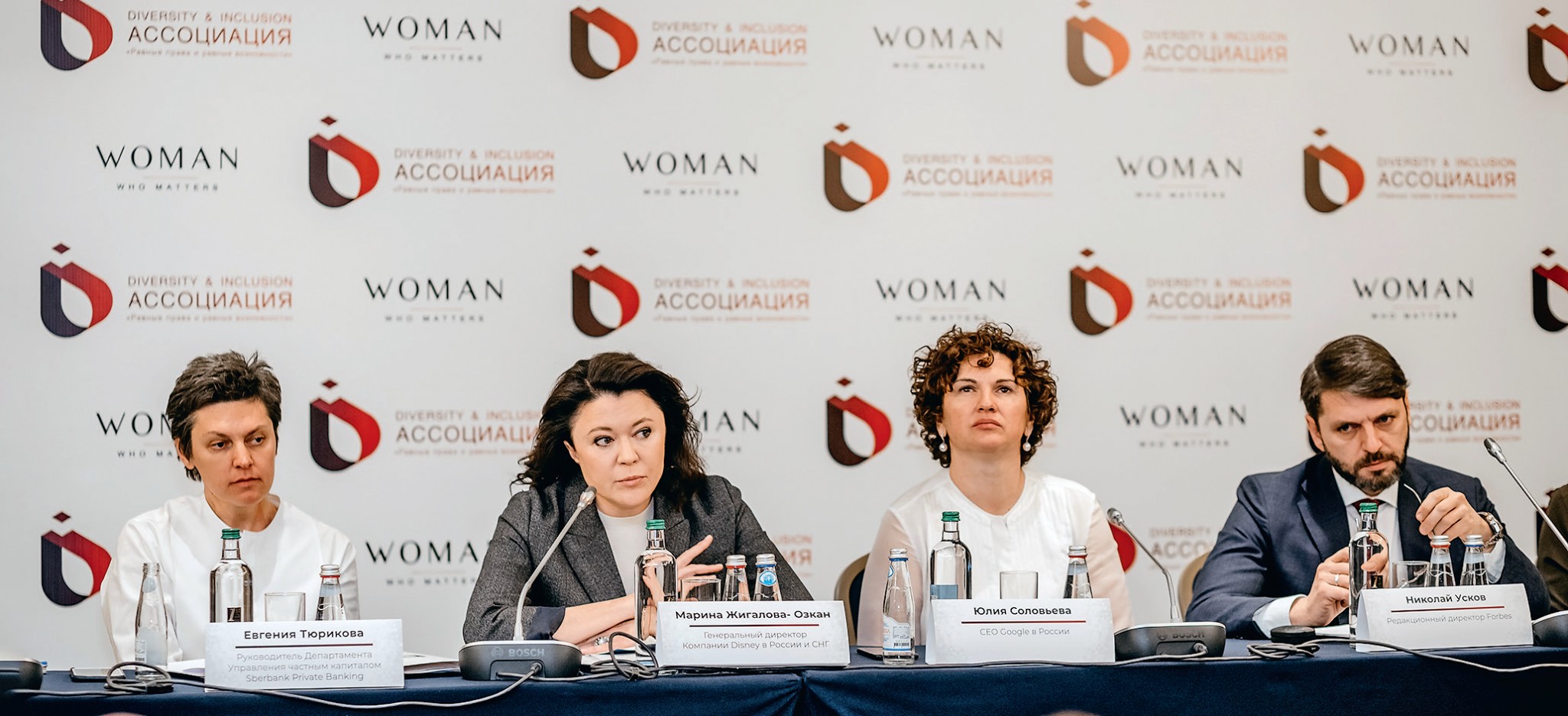 Глава Sberbank Private Banking Евгения Тюрикова, генеральный директор Disney в России и СНГ Марина Жигалова-Озкан, CEO Google в России Юлия Соловьева, редакционный директор Forbes Николай Усков