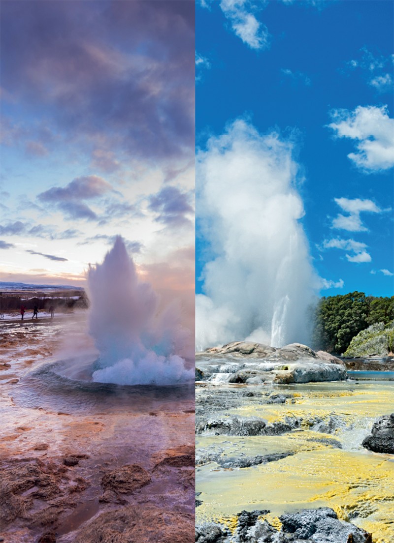 Тем, кто не хочет ждать извержения гейзеров в толпе других страждущих, предлагаем отправиться в противоположном направлении – в Новую Зеландию. В «стране горячей воды», как называют долину Роторуа местные, тоже есть извергающиеся гейзеры, причем их даже больше, чем в Исландии, – свыше десятка. Самый знаменитый «фонтан кипятка» – Похуту: он выбрасывает клубы пара и воды на 30 метров вверх, и это шоу продолжается около часа! Кроме того, как и в Исландии, в новозеландской долине гейзеров есть термальные источники, в которых можно купаться. И пусть добираться туда дольше, сложнее и точно не дешевле, зато и впечатления будут гораздо ярче, а «собратьев» по фотосъемке – в разы меньше!
