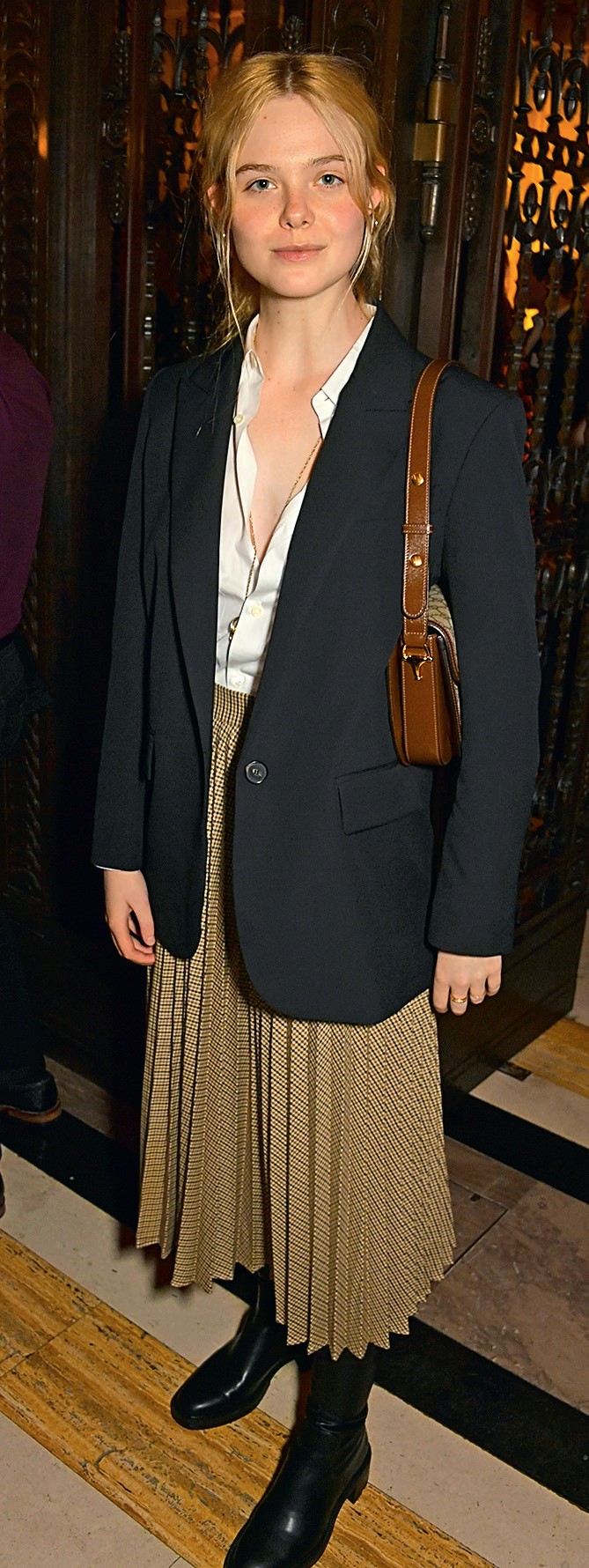 Кажется, Эль Фэннинг немного устала от своих знаковых эфемерных нарядов – на днях в Лондоне актриса появилась в буржуазном костюме Celine, совсем не похожем на платья принцесс, в которых мы привыкли видеть актрису. Возможно, все дело в съемках у Вуди Аллена (девушка сыграла главную роль в картине «Дождливый день в Нью-Йорке»), а может быть, Фэннинг
