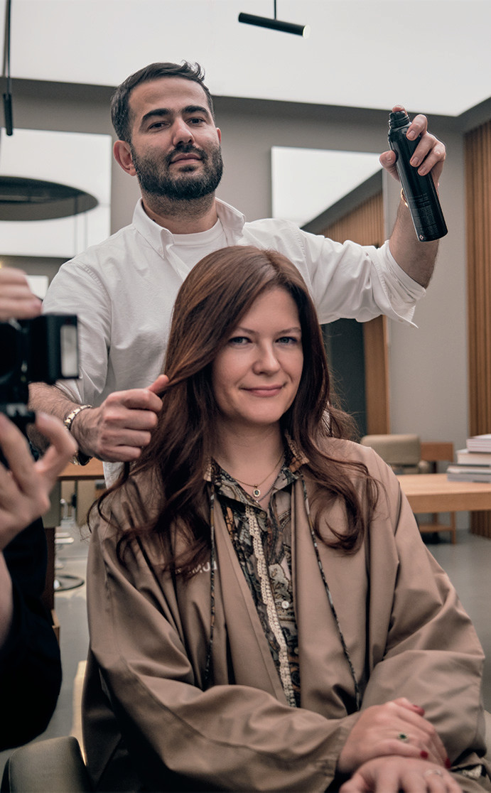 Я не адепт салонов красоты. Провести там несколько часов? Никогда! И вот я уже в кресле крашу волосы… Но обо всем по порядку. Найти своих специалистов для меня челлендж в силу моей нетактильности и закрытости. Мне важна энергетика человека. Когда я в первый раз попала в Lume 21, сразу поняла – это мое место. На маникюр к Ане Зимовец ходила как на медитацию, а сейчас продолжаю традицию у Жени Ефимовой. Как-то я снимала Софью Эрнст. Неожиданно для меня на площадке она появилась с огненно-рыжими волосами. И как же это красиво! С моей собакой Полли они познакомились на съемке ранее и сразу подружились. А тут еще и «мастью» совпали. И вот пришло время запланировать съемку для нашей рубрики «Трансформация». Желающих расстаться со своим цветом волос было немного. Да и я не рвалась. Поменять что-то в своем образе – не мой способ эскапизма или борьбы с осенней хандрой. Но когда наш бьюти-директор Настя Ежова анонсировала, что в рыжий цвет будет красить арт-директор Lume 21 Армен Захарян, я не устояла – ведь именно он работал над новым образом Софьи.