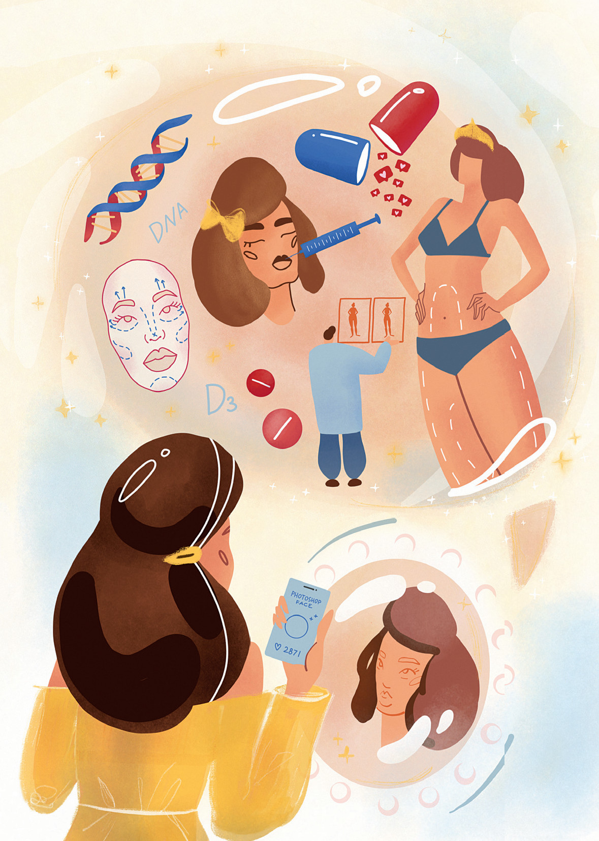 Логичным продолжением age management оказывается индивидуальный подход. Персонализированные витамины и БАДы, программы питания, тренировки, системы по уходу за кожей и волосами – все это можно получить на основе генетического теста. Нужно понимать, что анализ ДНК не равнозначен медицинскому чекапу, а значит, на основе полученных результатов невозможно обнаружить текущие болезни, выявить точные дефициты веществ или получить руководство о том, как вылечить мигрень. А вот проследить склонность к ожирению, болезням вроде Альцгеймера и наследственным аномалиям – вполне. Но ключевой момент – именно склонность. Зато по-настоящему полезной оказывается более развлекательная часть с велнес-, бьюти- и диетическими рекомендациями. Например, у компании MyGenetics есть программы MyBeauty и MyWellness – биоматериала в виде пяти миллилитров слюны будет достаточно, чтобы узнать подробности о механических свойствах своей кожи, процессах гликирования, гидратации, устойчивости к фотостарению, уровне антиоксидантной защиты, а также возможной непереносимости продуктов и причинах переедания, а еще обнаружить сильные стороны в области спорта.