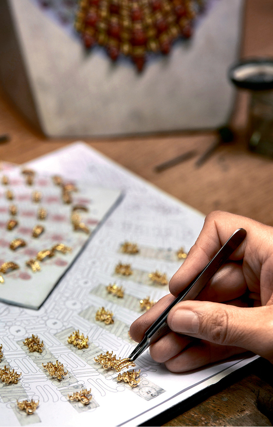 И вот теперь, уже во второй раз, твид становится темой ювелирной коллекции. Для этого, кстати, потребовалась такая же эстетическая и техническая революция. Первую часть Tweed de Chanel я видел в главном ювелирном бутике марки на Вандомской площади. Тогда в нее входили 45 украшений, а главным среди них было колье Tweed Couture: удивительное произведение, в котором в классической ювелирной технике колдовским образом воспроизводились цветовая гамма, структура и даже мягкость твида. Система креплений тонких оправ делали его подобием твидового воротничка с центральным камнем-застежкой.