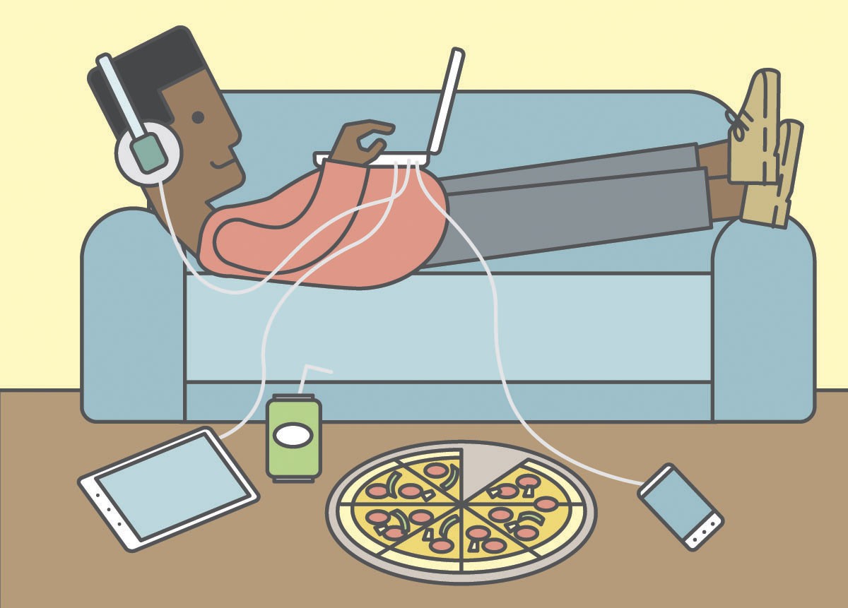О том, что ужинать, просматривая новый фильм на телефоне, оперев гаджет на перечницу, не полезно, медики говорят давно. Вред от приёма еды перед гаджетом заключается в том, что не желая пропустить ни одного интересного момента, мы интуитивно меняем позу, сутулимся, чтобы комфортно видеть всё происходящее на маленьком экране. Тело пребывает в физиологически неправильной позе, что негативно сказывается на работе желудочно-кишечного тракта. К тому же человек, который занят трапезой и просмотром видео одновременно, не может точно сказать, сыт он уже или готов съесть ещё. Именно поэтому в кинотеатре можно с одинаковой вероятностью съесть и маленькое, и большое ведёрко попкорна. Иногда мы настолько концентрируемся на видеосюжете, что не можем даже сказать, была ли еда вкусной или нет. А вот содержание просмотренного можем воспроизвести до деталей! Как следствие – уменьшение чувства удовлетворения от пищи и резкое снижение индекса насыщения. В результате мы переедаем, не следим, что попадает в желудок, а метаболизм постепенно замедляется.