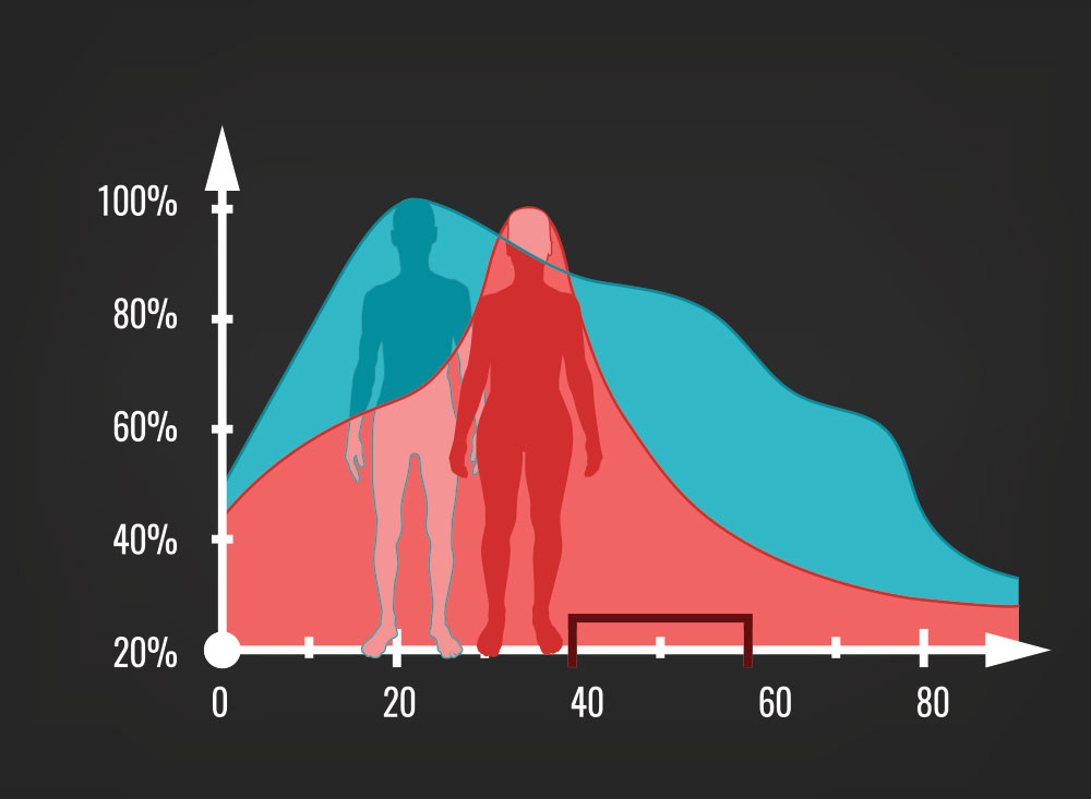 Почему снижается уровень тестостерона? Прежде всего из-за возраста. Это норма как для мужчин, так и для женщин. Например, у здоровых мужчин уровень тестостерона сокращается на 1% ежегодно, и к 80 годам он может составить 40% от его уровня в 25 лет. У женщин к 65 годам уровень тестостерона по сравнению с его концентрацией в 20 лет падает в три раза. Но дело не только в возрасте. Мы и сами часто провоцируем низкую выработку тестостерона. Вот главные причины снижения его уровня у здоровых людей: