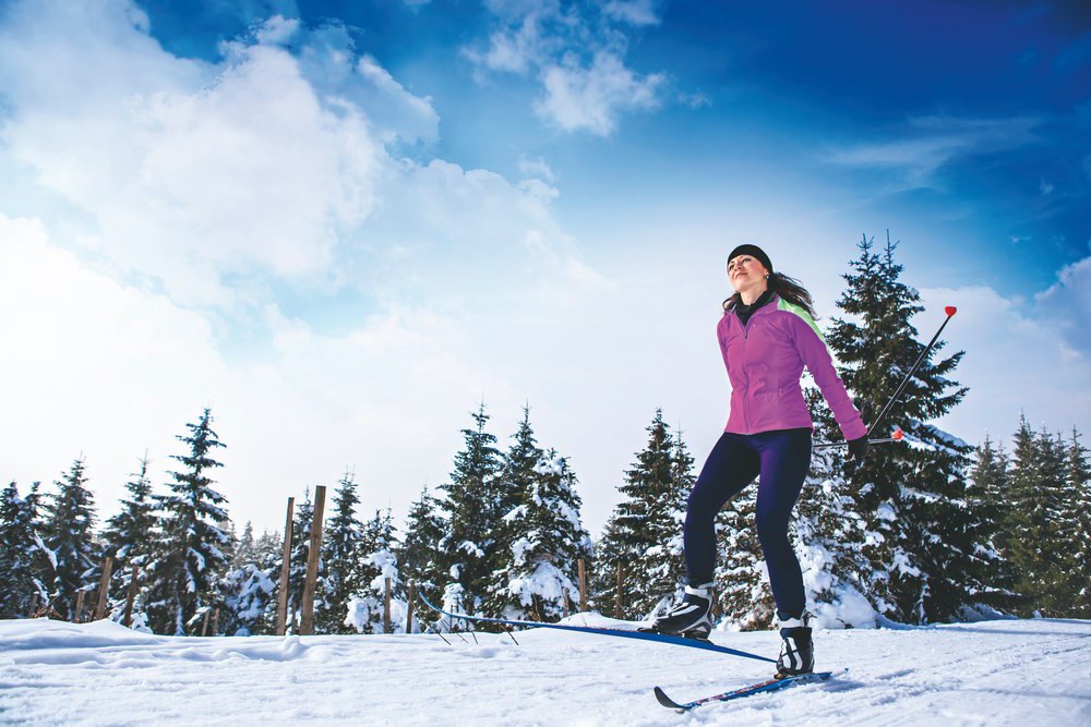 В идеале – взять пару занятий с инструктором лыжного центра. Начните с освоения правильной техники. Старайтесь во время движения равномерно загружать и ноги, и руки, и не идти, а скользить на лыжах после каждого отталкивания. Если лыжня уходит в гору, частота движения должна быть выше, когда перед вами спуск, скольжение после отталкивания удлиняется. Не передвигайтесь на прямых ногах, перед отталкиванием колени должны сгибаться.