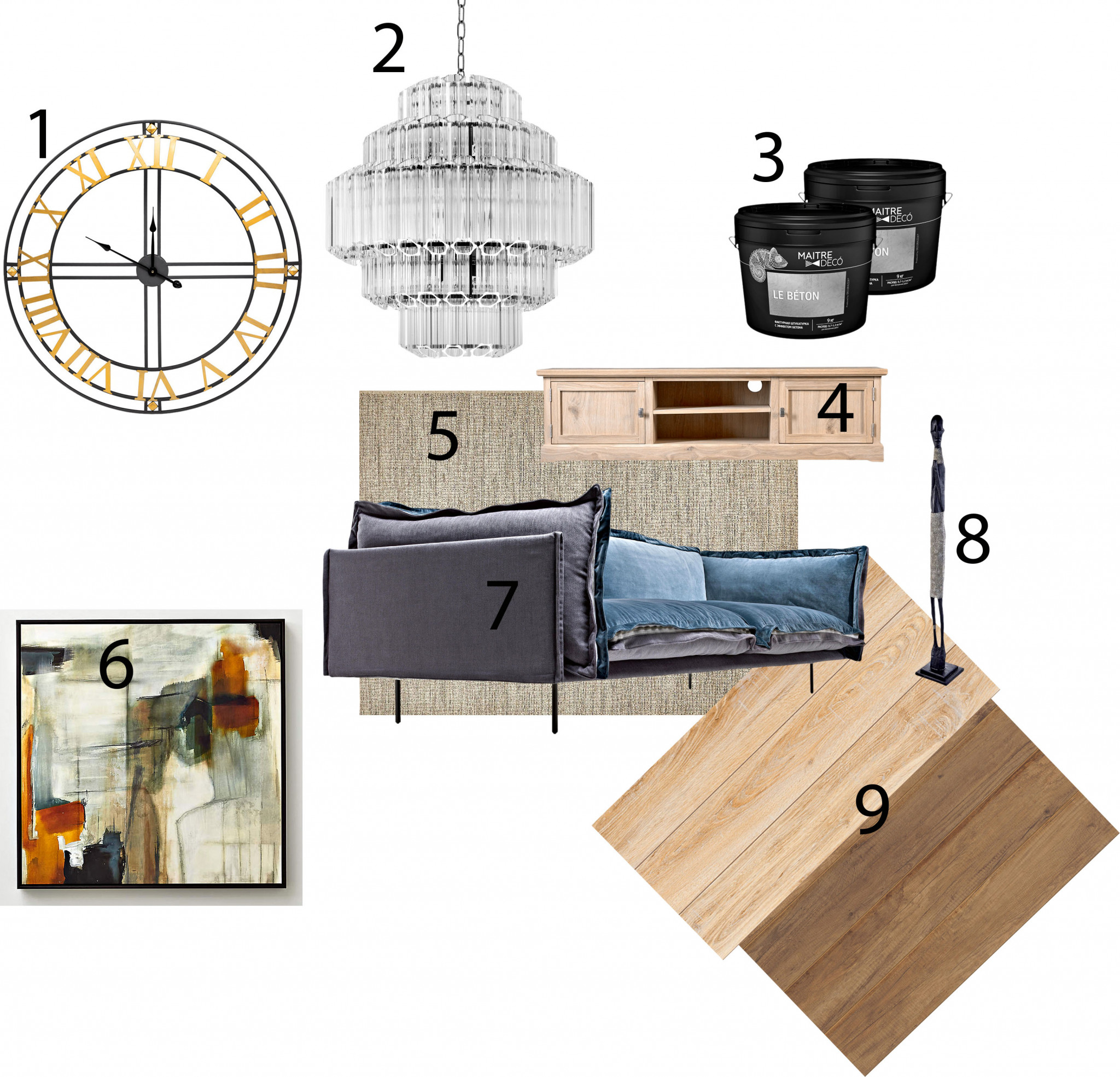 - Стены: колерованная декоративная штукатурка «Лофт Бетон» (Clavel)