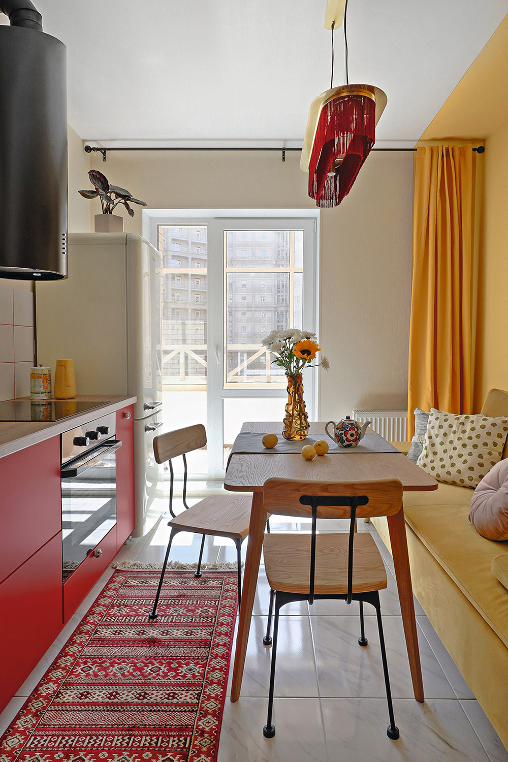 Создавая интерьер с элементами ретро, дизайнер оставила часть отделки от застройщика, чем помогла хозяевам сэкономить. Что-то из мебели она нашла на интернет-площадках и тем самым не только создала винтажную атмосферу, но и подарила предметам из 1960-х вторую жизнь