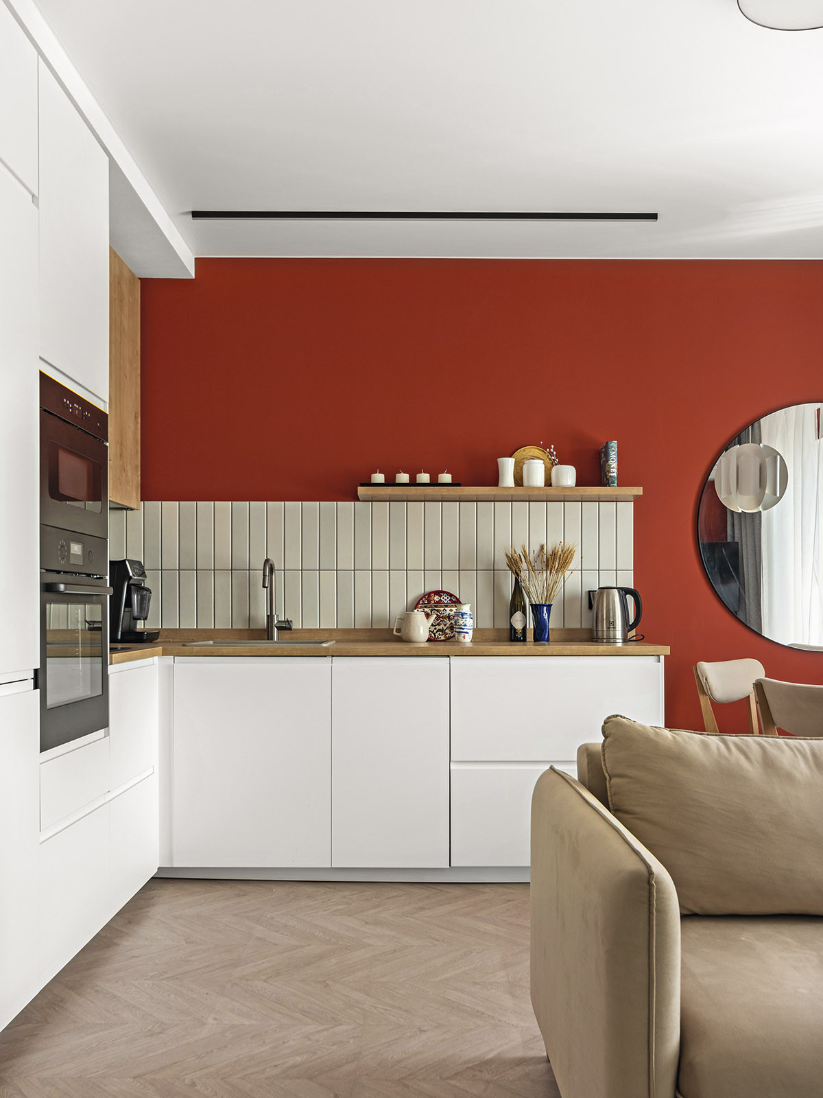 Молодая хозяйка московской квартиры в новостройке серии СЭМ-2 — девушка с широким кругозором и разносторонними интересами — пригласила дизайнера, чтобы та на небольшой площади грамотно разместила кухню-гостиную, спальню, кабинет, санузел, гардеробную, а также предусмотрела места для хранения книг. Из всех интерьерных стилей заказчице более всего импонировал европейский минимализм, а ещё ей нравились сочные цвета.