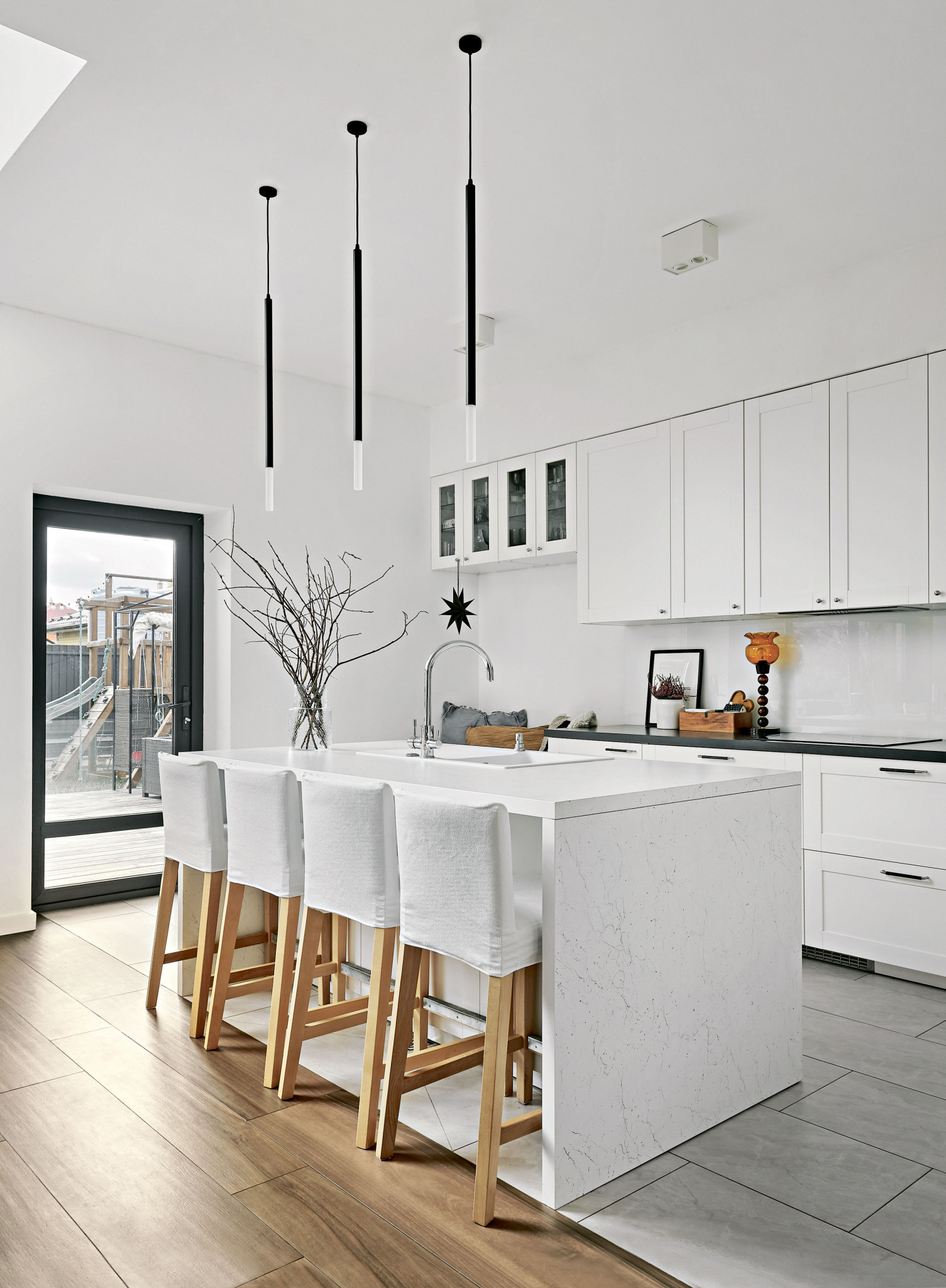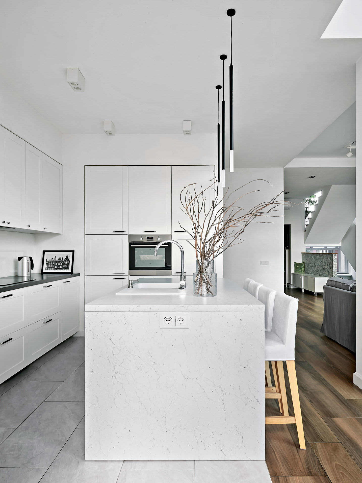Долгая, затяжная зима, короткий световой день в течение половины года сформировали желание оставить общую часть жилого пространства максимально светлой и чистой, чтобы сохранить настолько много солнечного света, насколько это возможно.