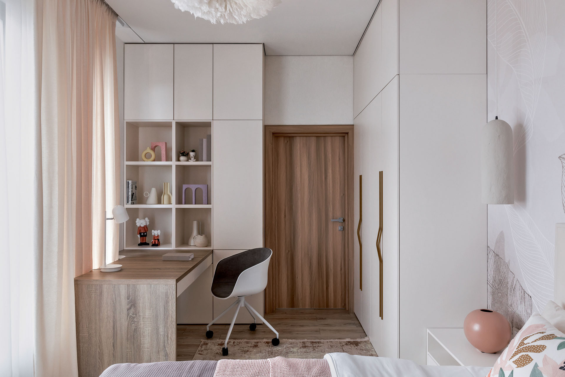 Мебель: выполнена на заказ по эскизам дизайнера дизайн-студией ARTEFACT (корпуса Egger, плёночные фасады), мебель-трансформер «Чудо-шкаф»