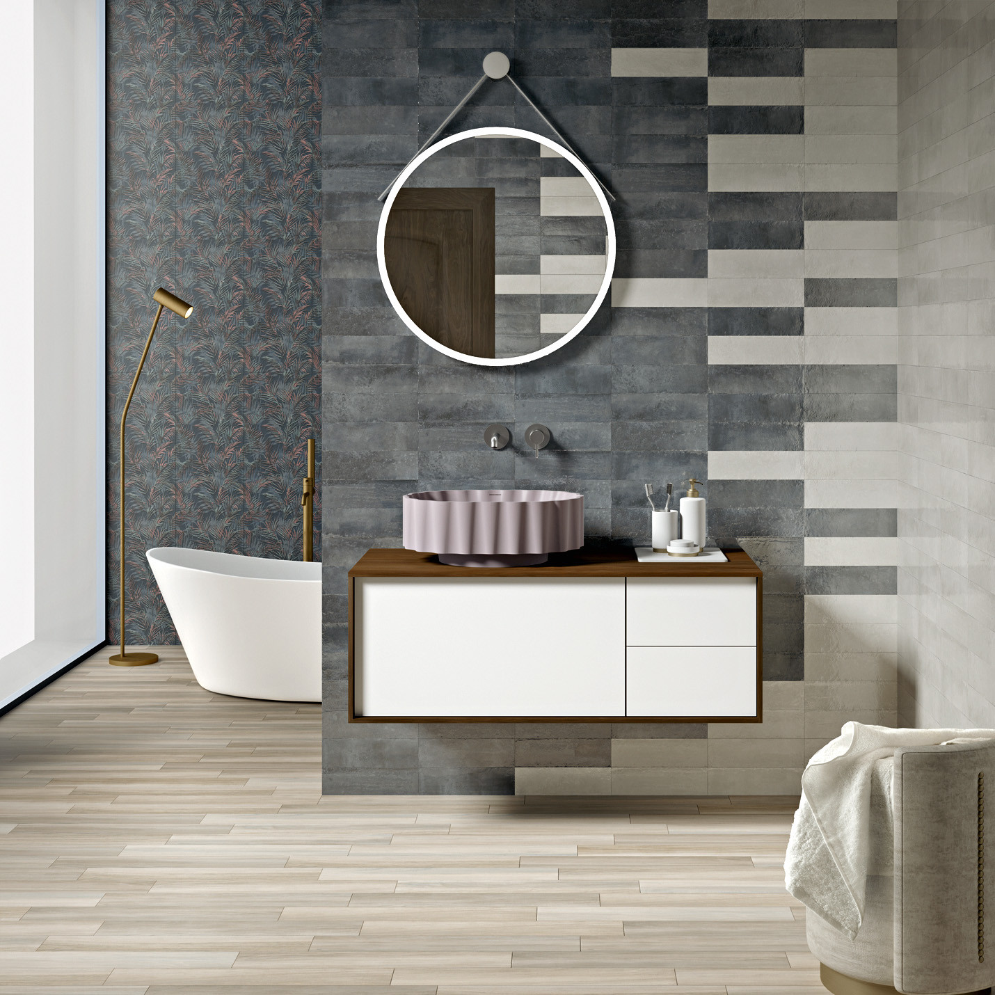 Приверженцам модных тенденций стоит напомнить, что в оформлении санузла, как и жилого пространства, ценятся штрихи индивидуальности. Не стандартные, пусть даже очень стильные детали, а подходящие именно вам. Любите природу, увлекаетесь спортом, путешествуете, собираете марки, играете на кларнете — намекнуть можно на что угодно посредством керамической отделки, если вы того захотите, а сантехнику и мебель подобрать с учётом декора стен. И экостиль, и минимализм, и сканди, и хай-тек можно создать, используя одни и те же предметы мебели и сантехники современных форм. Да и голову ломать особо не придётся — ради экономии пространства и единства стиля сантехнику часто встраивают в мебель.