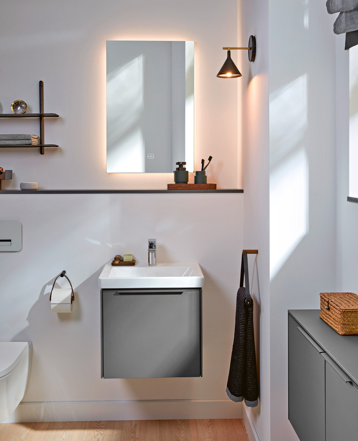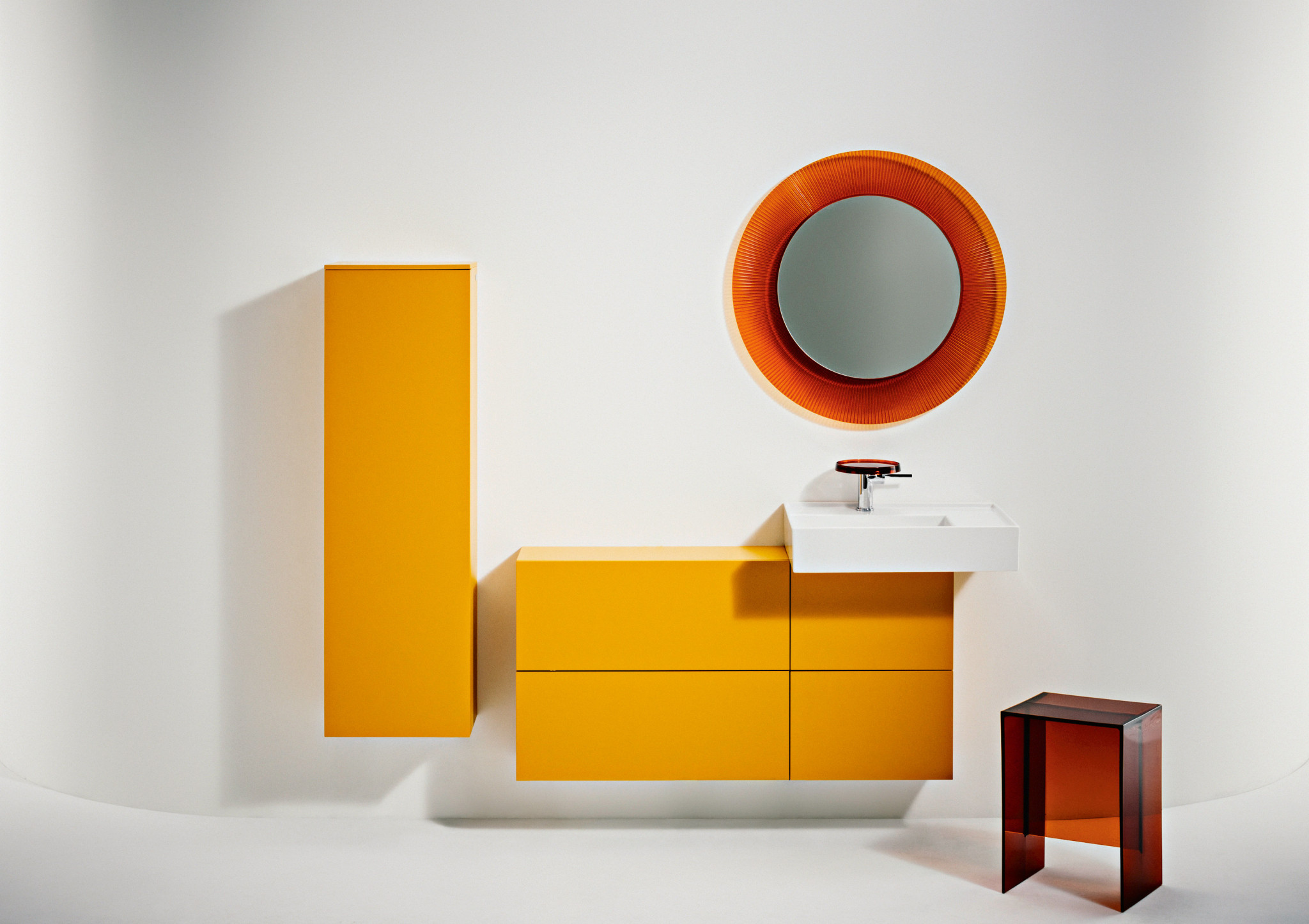Вариантов комбинирования производители предлагают много. Прежде всего надо определиться с дизайном и размерами, выбрать из нескольких типовых решений. Если вам импонирует тумба с накладной раковиной, то могут быть ещё варианты с отверстием под сифон справа, слева или посередине модуля, как у VariForm от Geberit. Да и формы накладных раковин самые разные: круглые, прямоугольные, овальные, эллиптические, конусообразные. И цветовая палитра представлена несколькими позициями. В результате каждому, кто занимается подбором мебели самостоятельно, предстоит попробовать себя в роли дизайнера, сочетая формы и цвета.