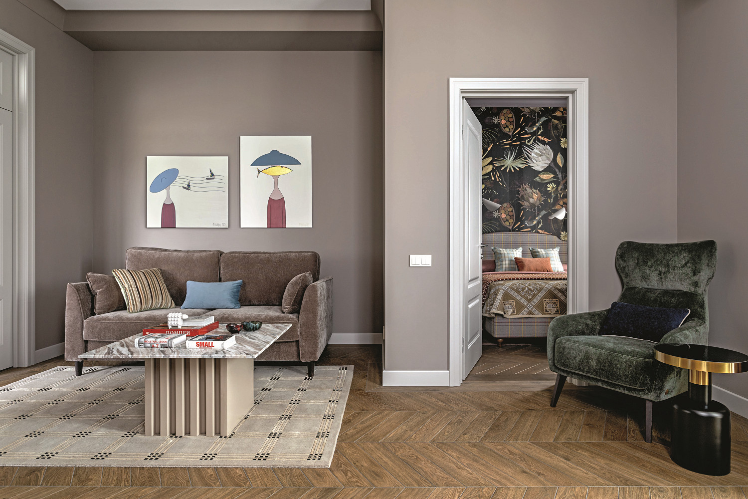 Заказчица — молодая девушка — обратилась к архитектору с интересным запросом: наполнить современную квартиру выразительной цветовой палитрой, но сделать это тонко и сдержанно, используя классические приёмы оформления пространства