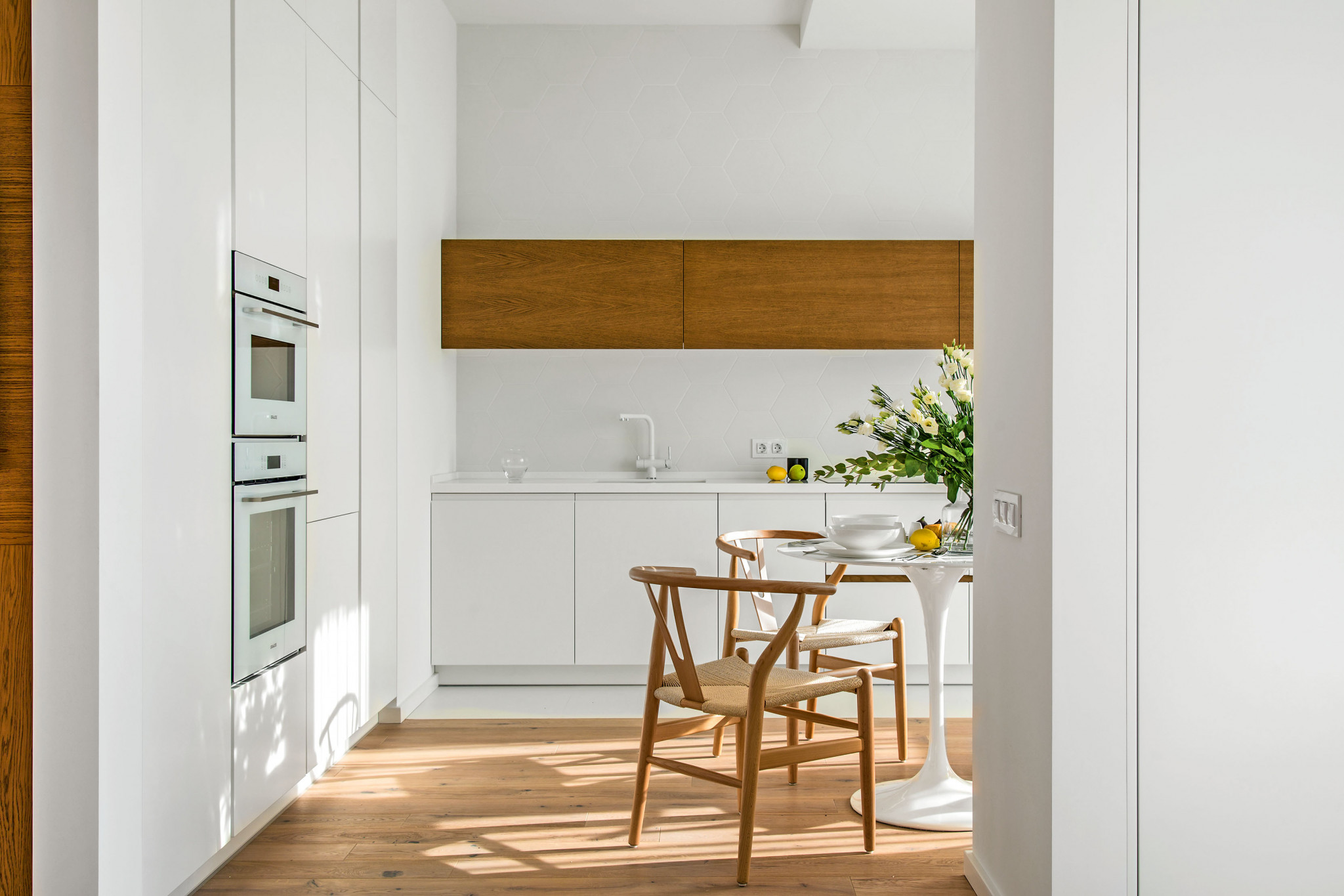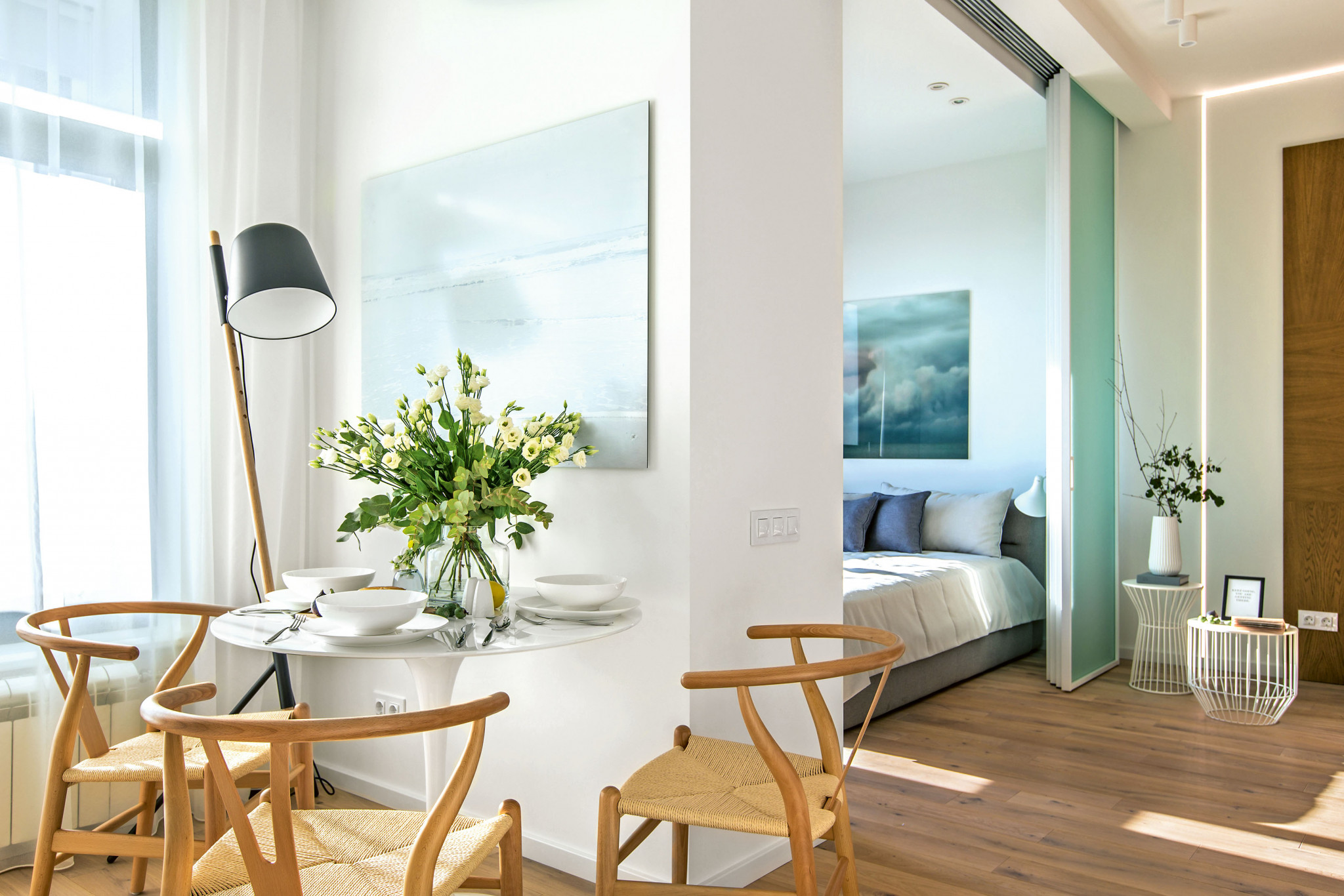 В интерьере этой небольшой московской квартиры, оформленной на стыке минимализма и экостиля, нет ни одной лишней детали. При взгляде на неё возникает ощущение свободного, светлого и чётко спланированного пространства