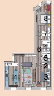 Авторы проекта получили в работу прекрасный «материал» — квартиру с условно свободной планировкой, в которой было намечено только местоположение влажных зон, а капитальная конструкция, да и то колонна, имелась всего одна. При этом из окон объекта открывался вид на исторический Петербург и во двор (архитекторы в шутку назвали его «Питерский колодец 2.0»). Предполагалось, что хозяйка, первокурсница Санкт-Петербургского государственного университета, будет жить одна, однако в квартире надлежало обустроить вторую жилую комнату — пока в качестве спальни для родителей, но с перспективой — для ребёнка. Также нужно было оборудовать просторную репрезентативную зону — совмещённую кухню-гостиную — поскольку бóльшую часть времени владелица предполагала проводить именно там.