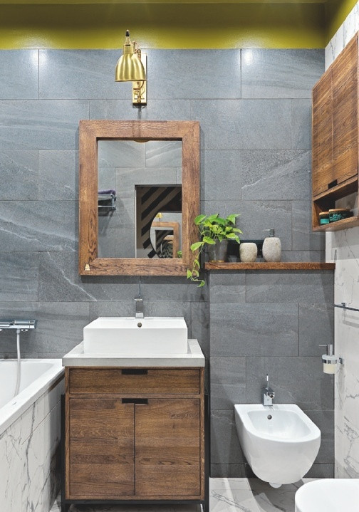 Исходно жилые комнаты — спальни хозяйки и её родителей — были просторными и слегка вытянутыми, блок вспомогательных помещений имел внушительную площадь, а почти по самому его центру располагался сантехнический стояк. Небольшую часть каждой спальни прямо на входе отдали под гардеробные: возвели перегородки, а доступ — с угла — закрыли плотными шторами. Поблизости от комнаты родителей оборудовали санузел (надо заметить, он остался в тех же границах, которые предполагались застройщиком), где разместили всю требуемую сантехнику (в том числе и душевой уголок), а также стиральную машину. У второй мокрой зоны забрали незначительный фрагмент, сложили его с частью спальни дочери и превратили в кладовую. Тем не менее основной санузел удалось сделать ванной комнатой. Более того, оборудование расположили по трём сторонам помещения и вместили не только стандартный комплект «раковина, унитаз и ванна», но и биде.