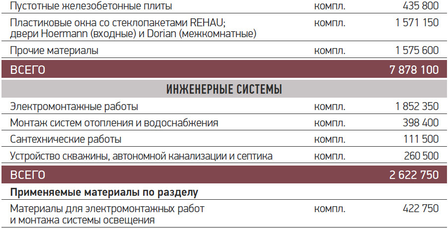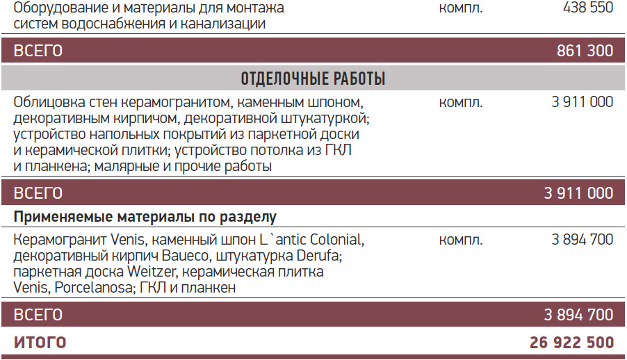 Укрупнённый расчёт стоимости обустройства дома общей площадью 285 м2 , аналогичного представленному*
