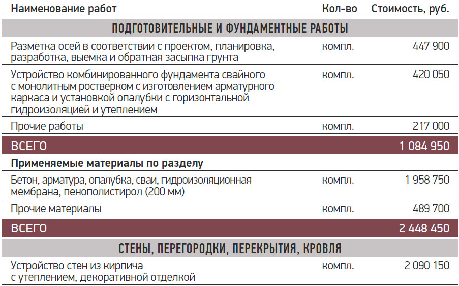 * Расчёт выполнен без учёта накладных, транспортных и других расходов, а также прибыли фирмы.