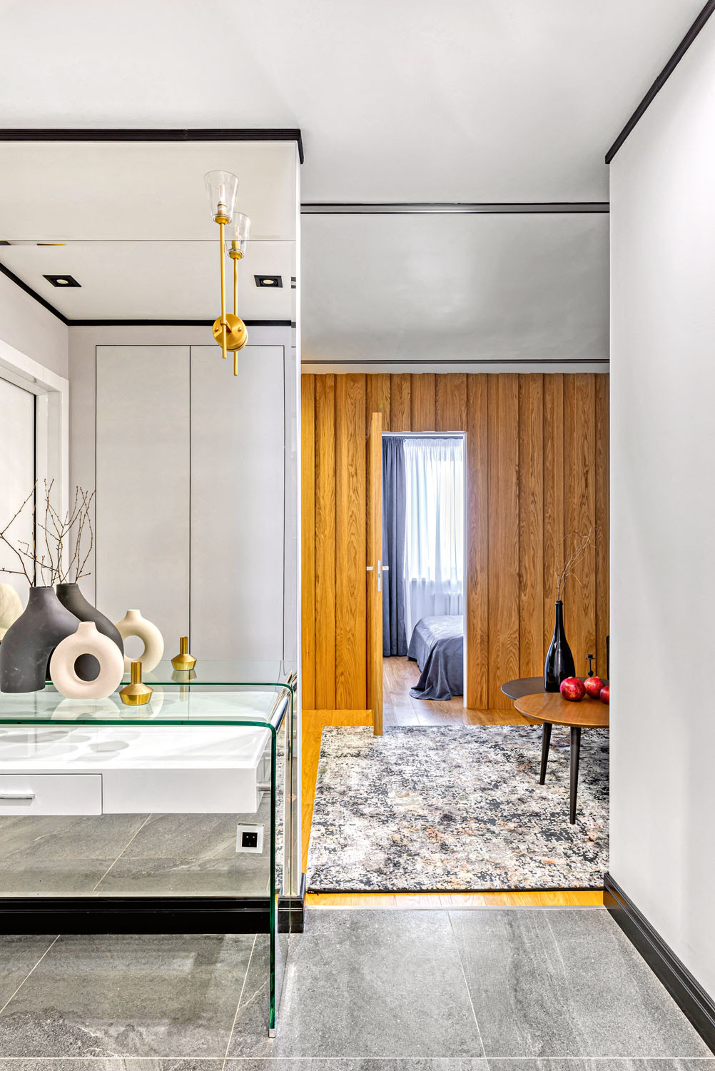 - Стены: краска Tikkurila МЕБЕЛЬ: консоль — интернет-магазин imodern.ru, шкаф — на заказ