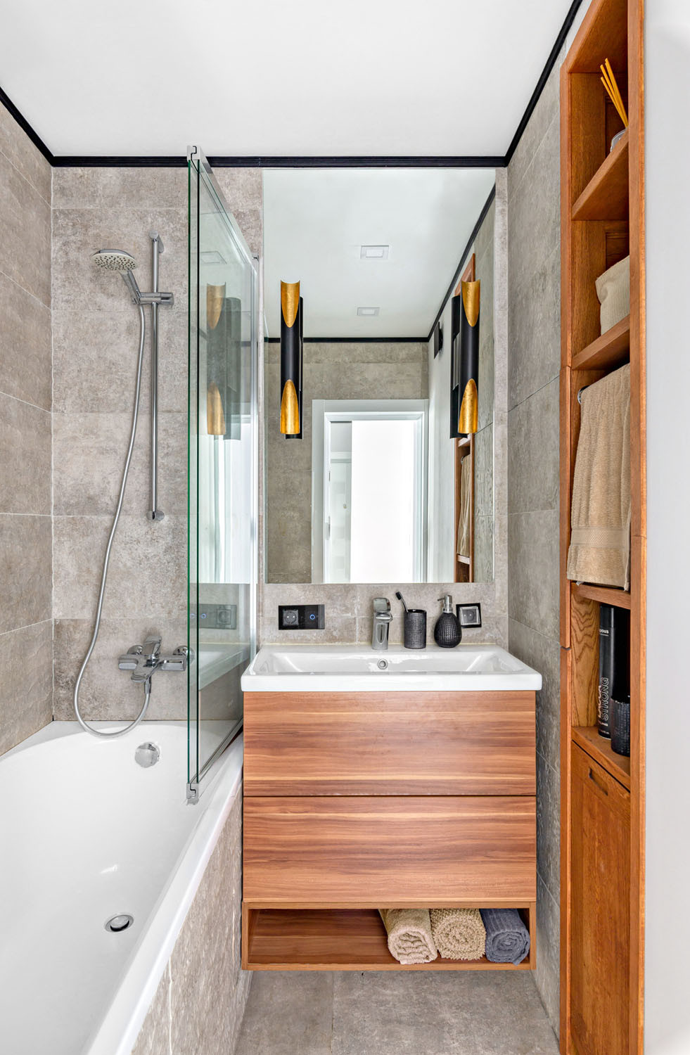 Мне хочется поблагодарить заказчицу за внимательное отношение к моим идеям. Авторского надзора не было. И я — как часто бывает в таких случаях — уже настроилась, что профессиональные дизайнерские решения уйдут в стол. Неподготовленному заказчику сложно разобраться в нюансах. Рано или поздно наступает усталость от ремонта, от общения с поставщиками и строителями, от финансовых затрат. И человек, который сталкивается с ремонтом впервые, словно соскакивает с нужного направления, отходит от проекта и действует «уже как-нибудь, только бы быстрее». Или увлекается «самодизайном». В результате и у автора, и у заказчика рождается недовольство. Был проект, была красивая картинка, но она не получилась. Потому что реализация оказалась просто не по силам человеку, далёкому от работы с интерьером. Но в данном случае всё закончилось благополучно. Заказчица, уверенная и самостоятельная в жизни, так же уверенно и самостоятельно занималась новым для неё делом. И всё получилось превосходно. Именно по этой причине считаю её своим полноценным соавтором.
