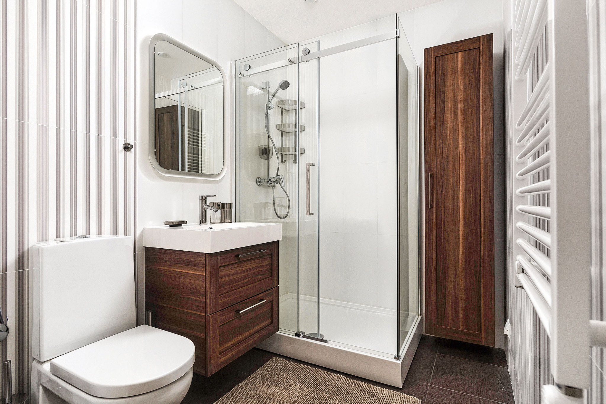 Ремонт. В квартире уже была выполнена стяжка, поверх которой в прихожей и кухне полы облицевали керамогранитной плиткой, в спальне и гардеробе — ламинатом, в санузле — керамической плиткой. В прихожей, ванной, студии — в зоне кухни и у дивана — предусмотрели электроподогрев пола. Стены оштукатурили, оклеили обоями и покрасили. Потолки сделали во всех помещениях натяжные. Окна и радиаторы менять не стали, благо качество их было очень хорошее. Лоджию не утепляли.