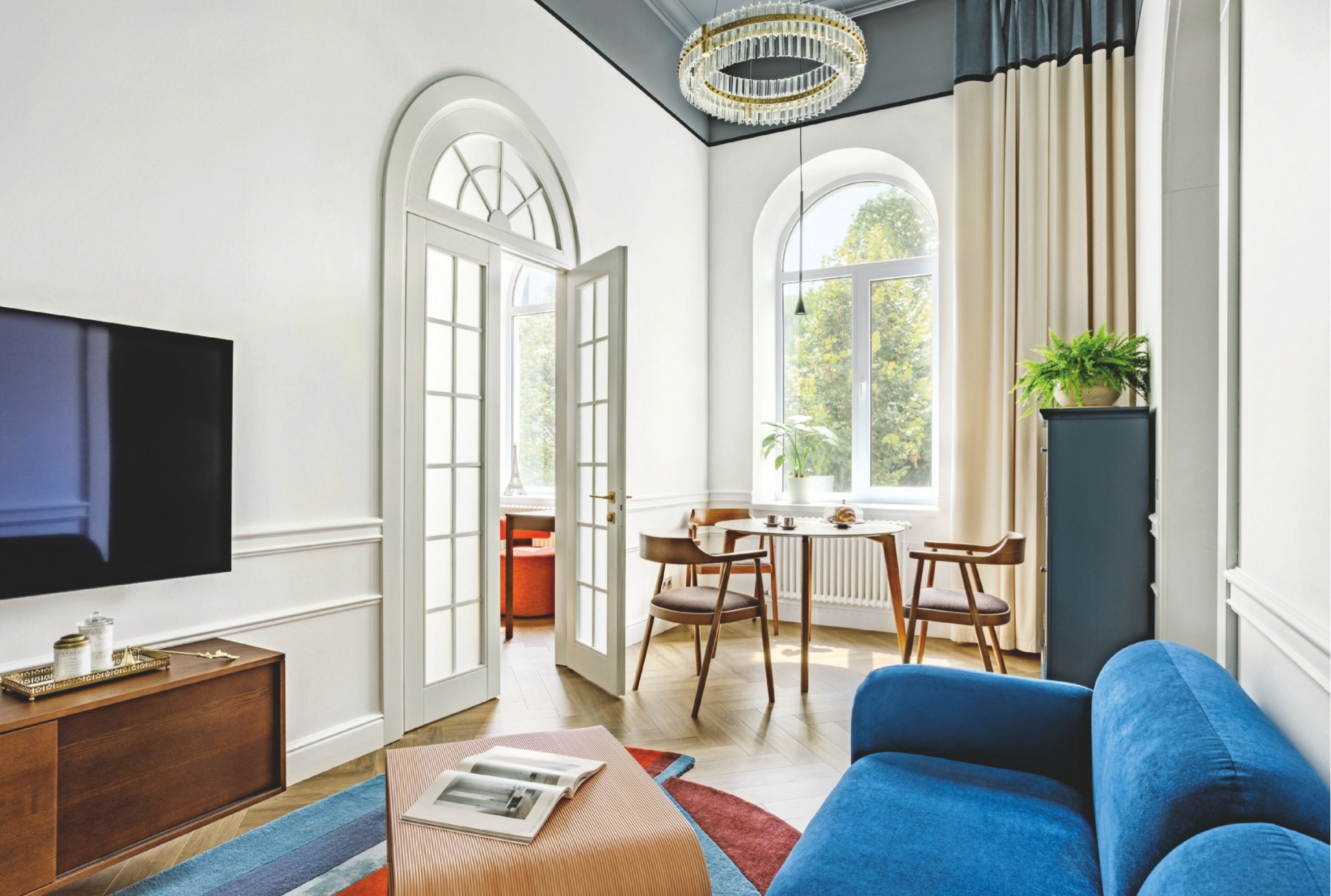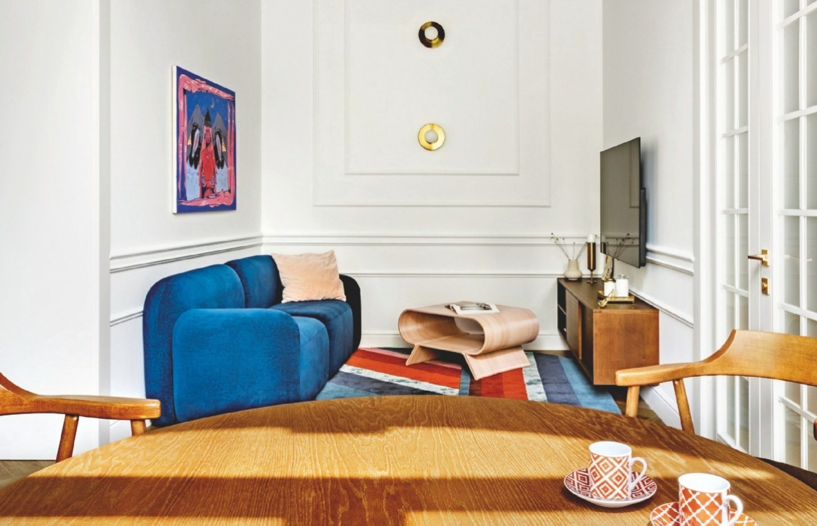 Квартира в каменном доме XIX в. находится в историческом центре Краснодара. В царское время здание принадлежало купеческой семье, в советское — поделено на четыре отдельные квартиры. Одну из них по случаю приобрёл местный предприниматель в качестве дополнительного жилья — для отдыха, временного размещения друзей и родственников, которые часто приезжают погостить. Авторский интерьер создавался под заказчика.