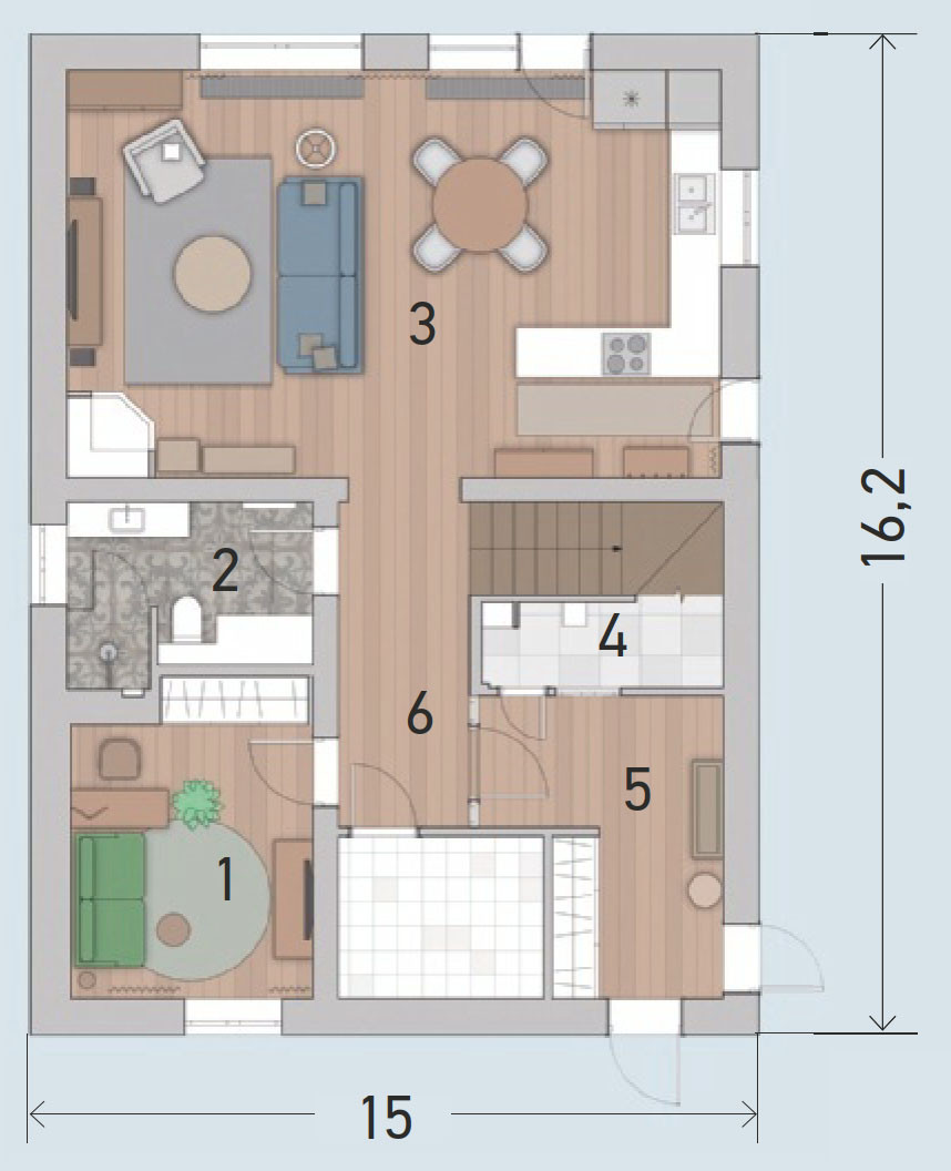 5. Гостевой санузел — 6,6 м2
