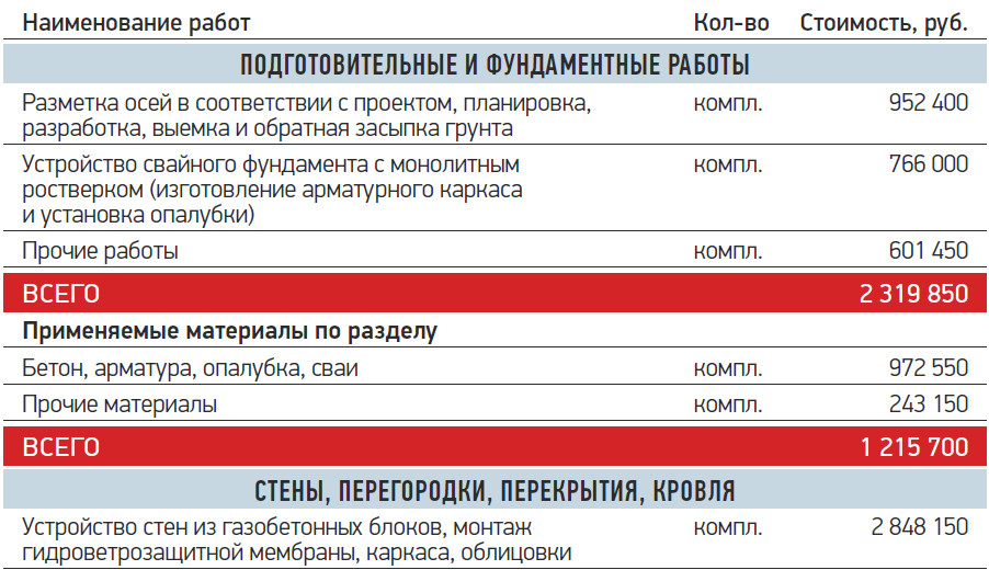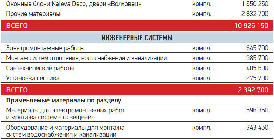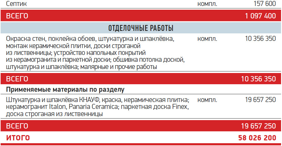 Укрупнённый расчёт стоимости обустройства дома общей площадью 252 м2 , аналогичного представленному*