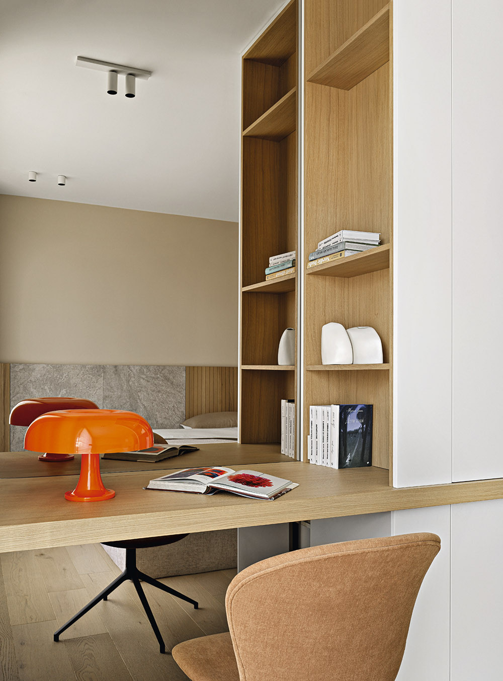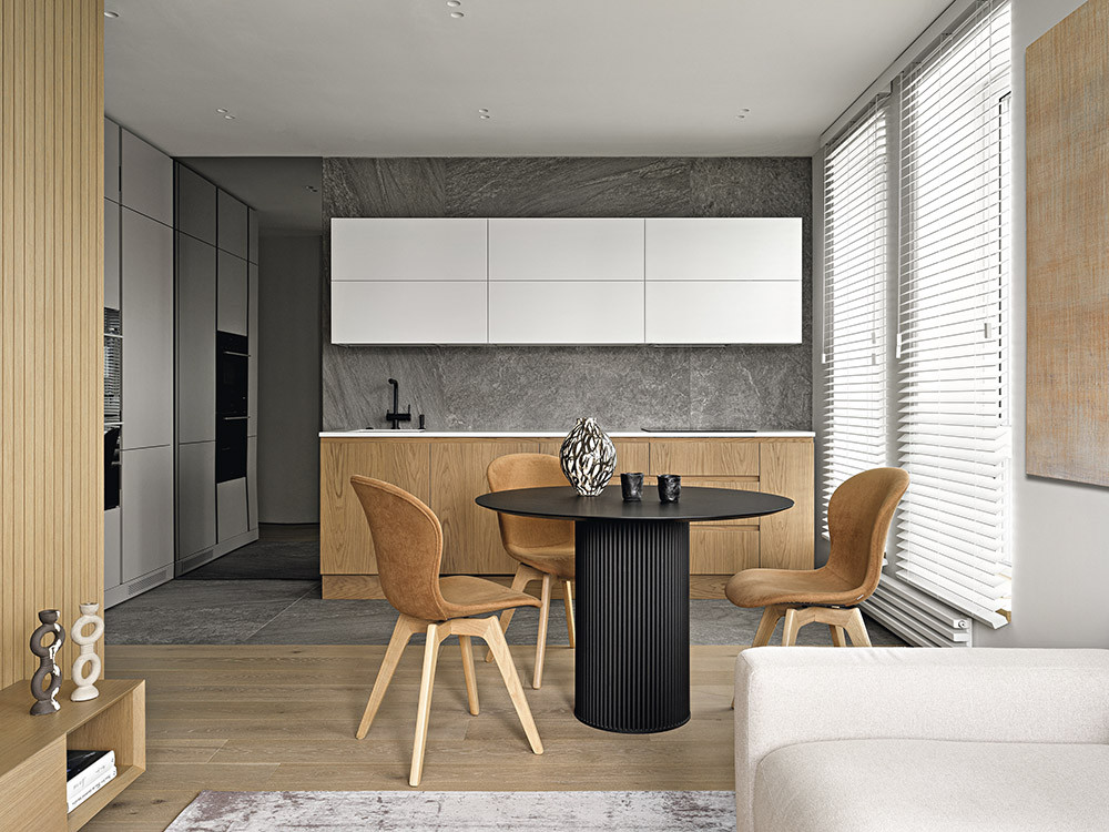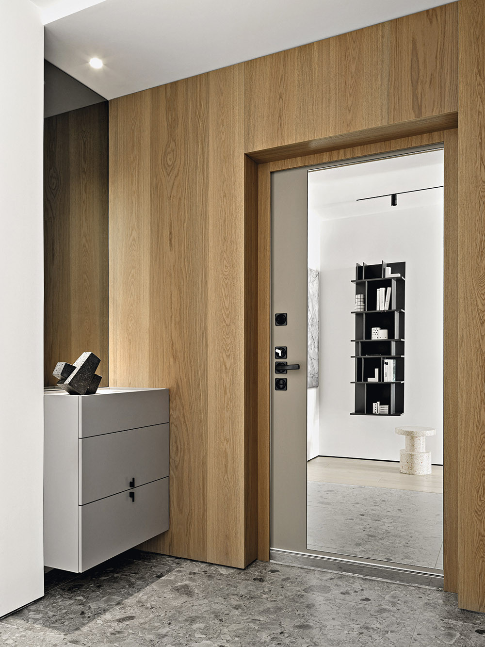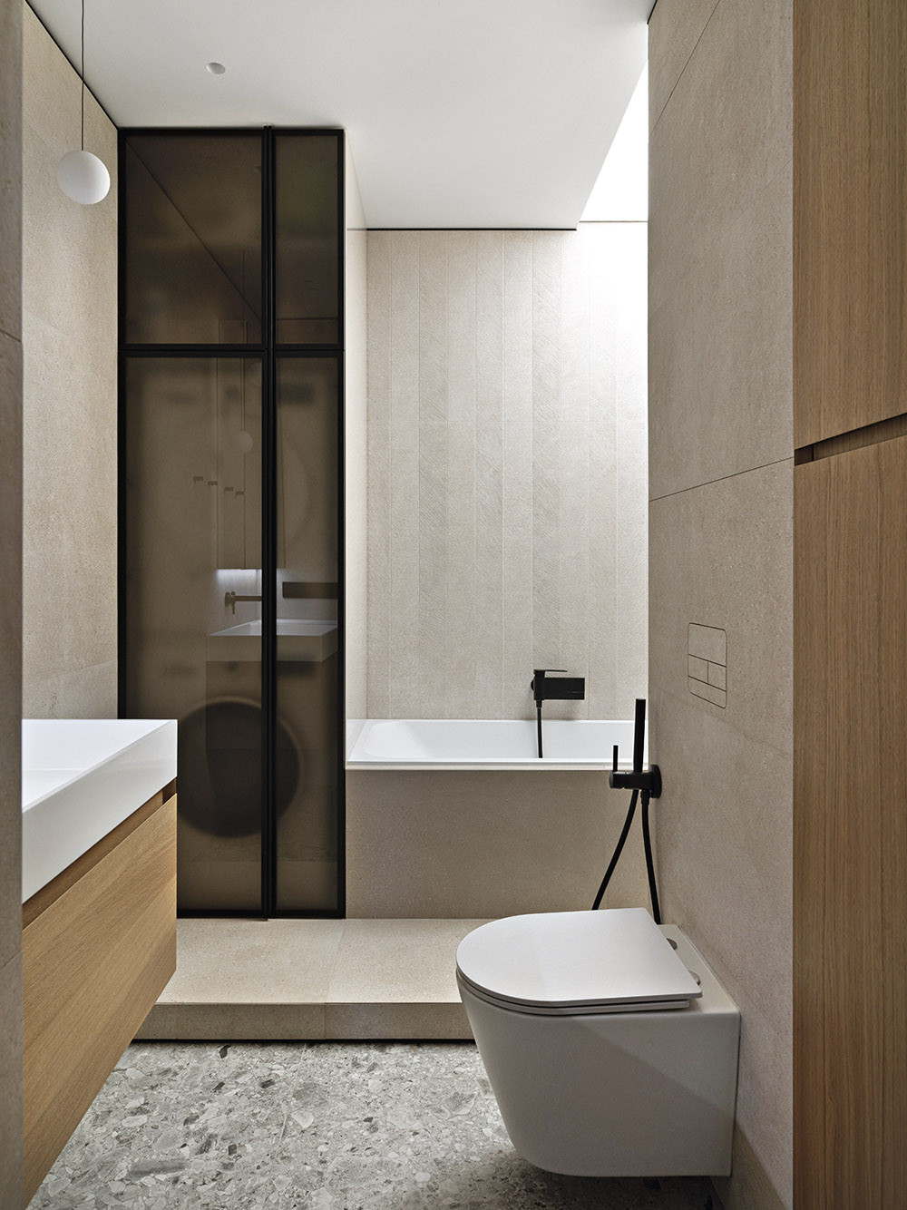 Архитекторы поставили перед собой задачу создать в собственном жилье островок спокойствия и стабильности среди городского насыщенного трафика. Добиться этого помогли грамотное зонирование, шумоизоляция, единство и повторяемость материалов, цветовые сочетания. И архитектурный подход к интерьеру: работа с объёмами, целостно, без лишних украшательств