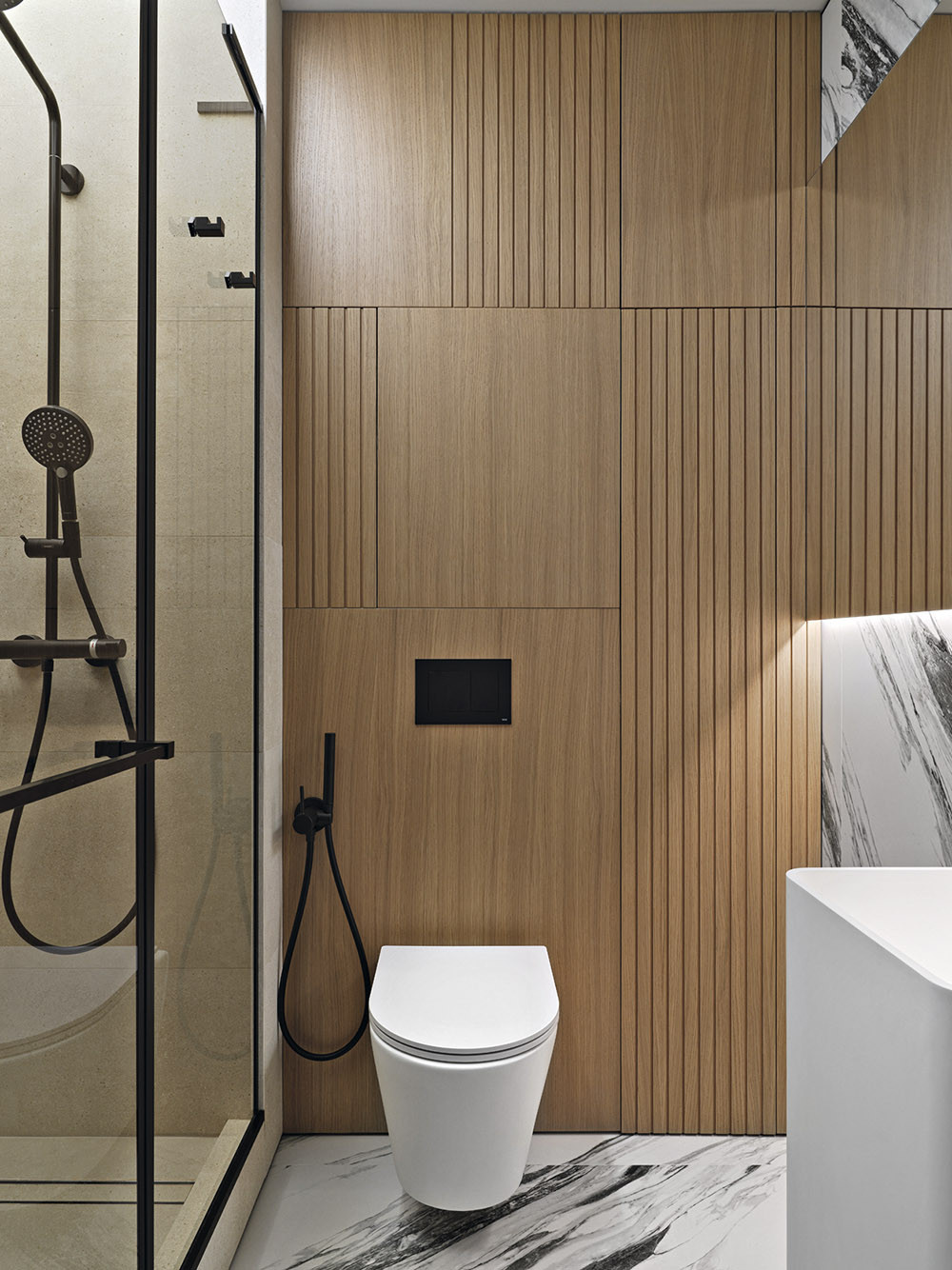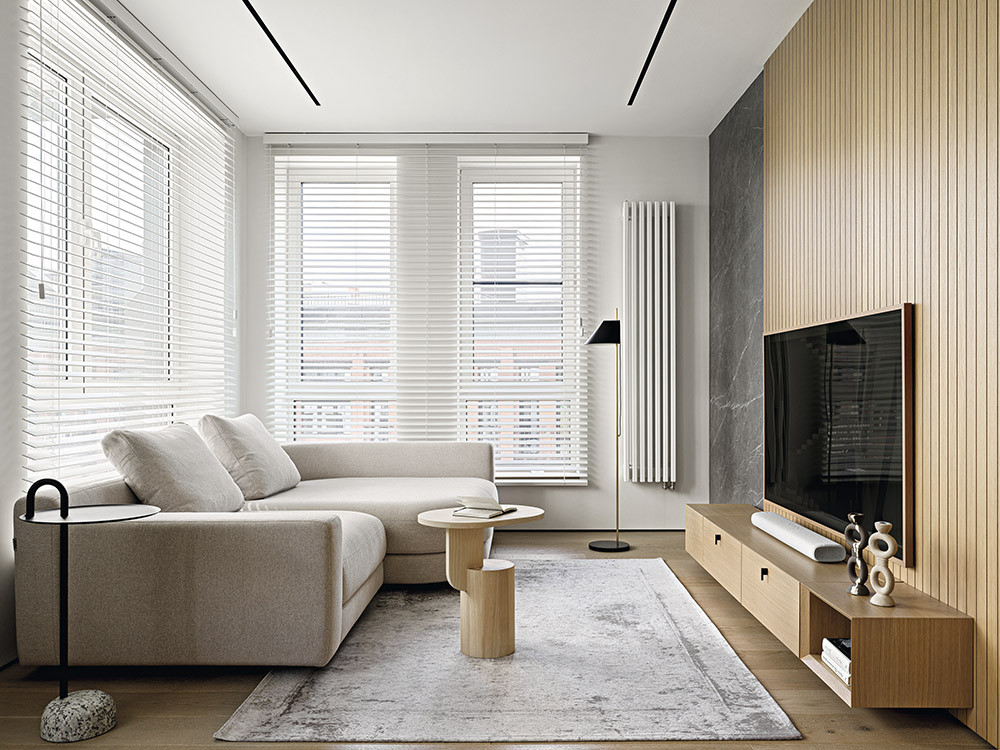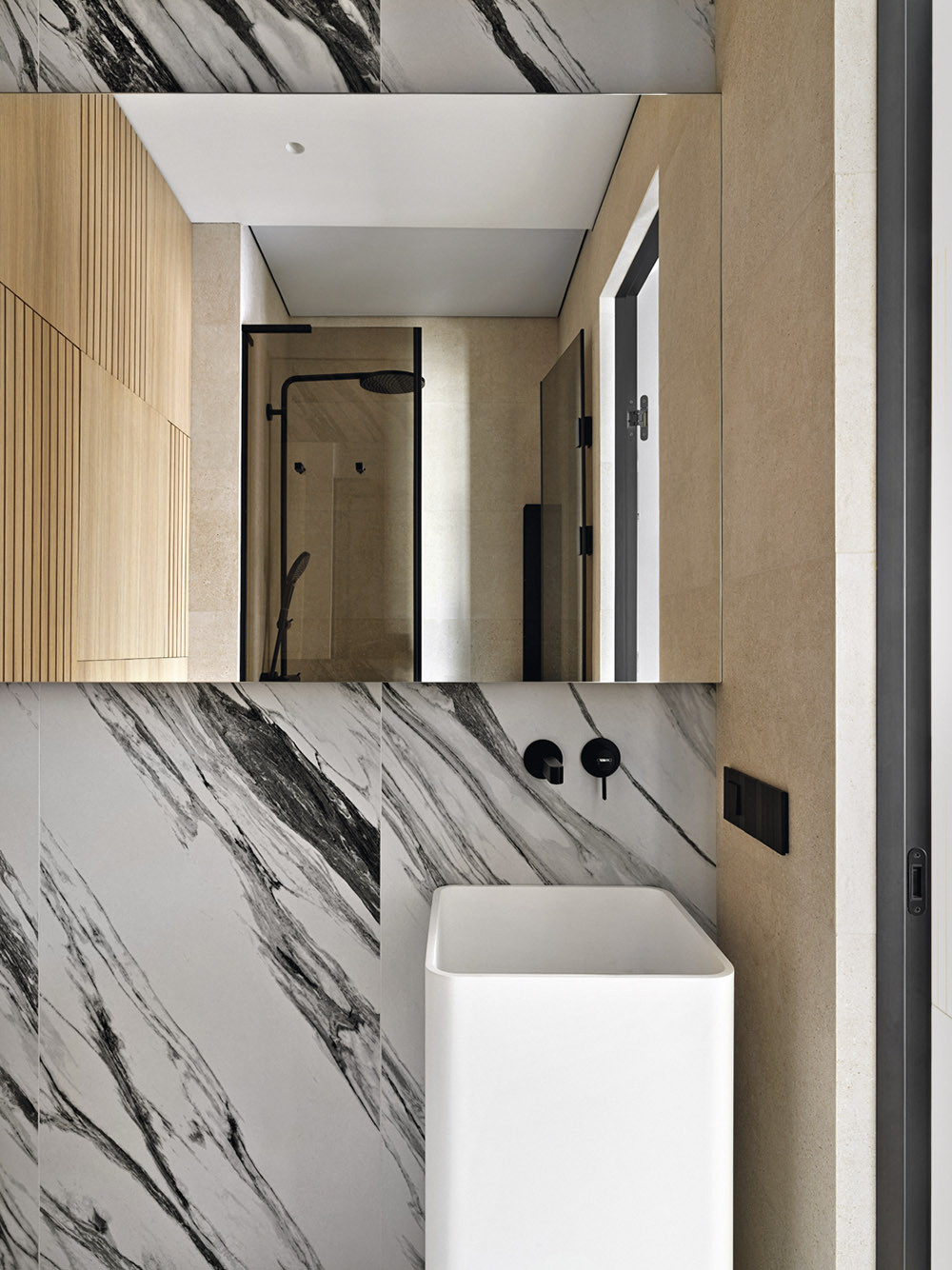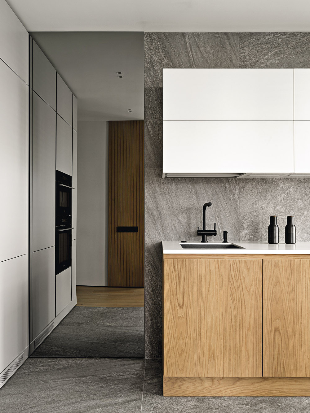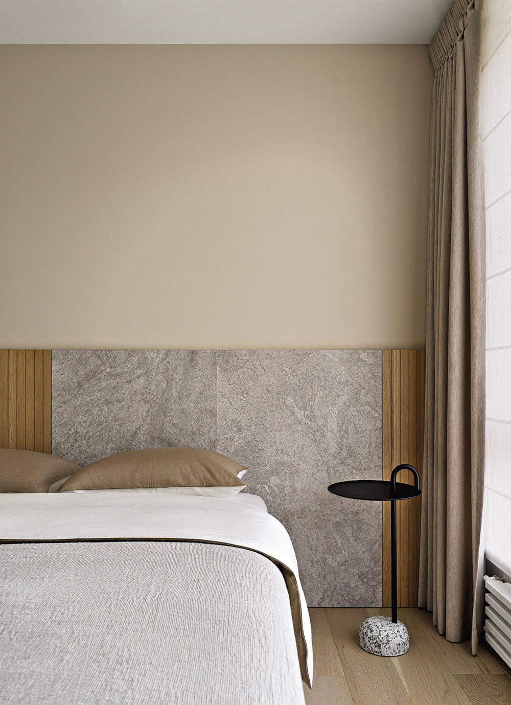 Архитекторы поставили перед собой задачу создать в собственном жилье островок спокойствия и стабильности среди городского насыщенного трафика. Добиться этого помогли грамотное зонирование, шумоизоляция, единство и повторяемость материалов, цветовые сочетания. И архитектурный подход к интерьеру: работа с объёмами, целостно, без лишних украшательств