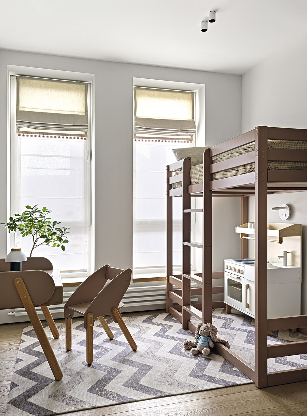 Перед покупкой жилья перед авторами-владельцами стоял выбор: начать строить загородный дом (что уже давно является их глобальной целью) или купить квартиру недалеко от центра Москвы. Проанализировав текущий жизненный сценарий семьи, они поняли, что на данном этапе очень привязаны к городскому образу жизни — работой, садиком и кружками ребёнка. Поэтому победил более рациональный вариант — приобретение квартиры, вернее, апартаментов. Остановились на варианте квартиры площадью 63 м², в которой восемь окон. Но тем интереснее задача — архитекторам удалось создать жильё, где функционально задействован каждый метр пространства. По словам супругов, получился идеально сбалансированный и комфортный интерьер для семьи из трёх человек.