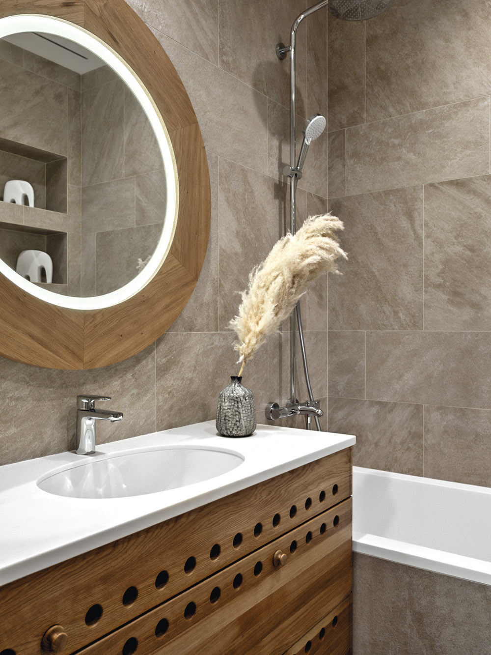• Пол: керамогранит VIVES Ribadeo Gredos, инженерная доска Lab Arte