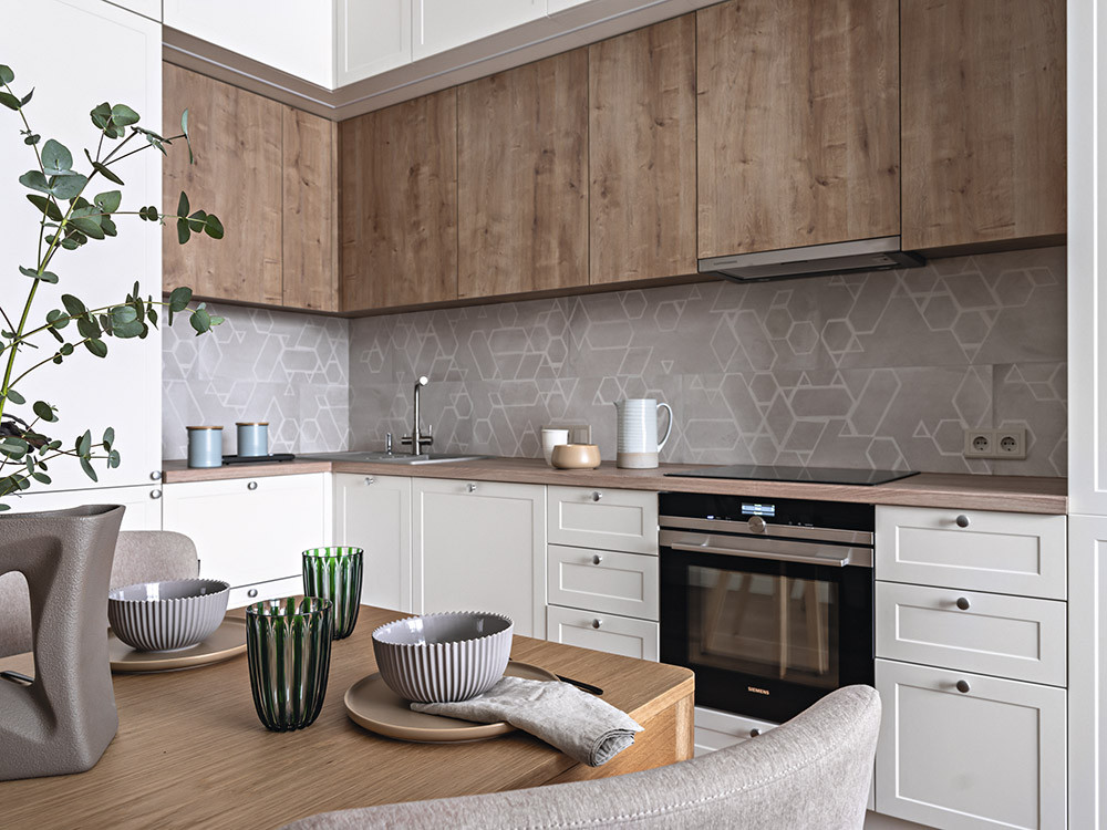 • Бытовая техника: вытяжка Kuppersberg, холодильник Whirlpool, ПММ, варочная панель — Siemens