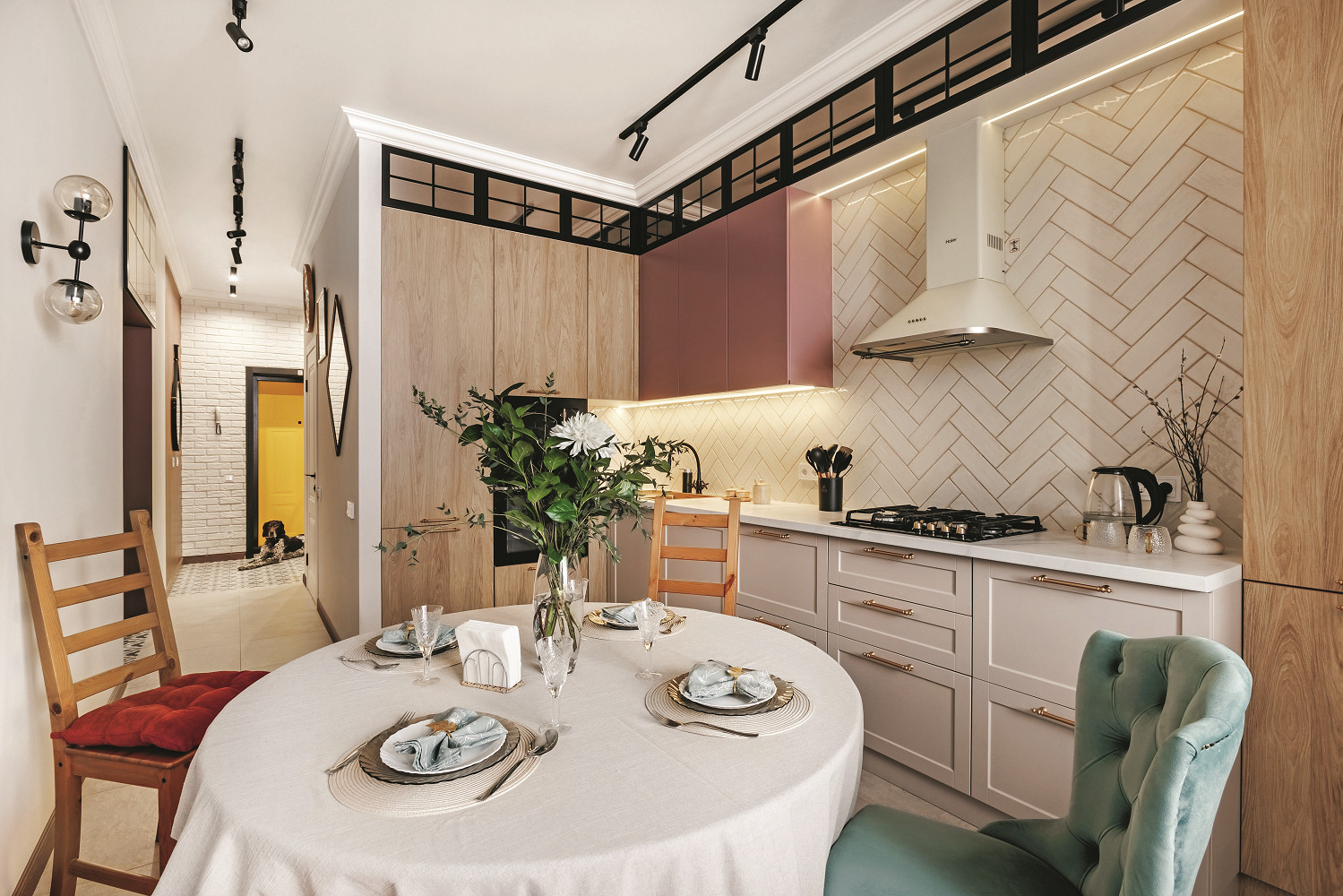 Эта квартира во Владимире проектировалась для молодой семейной пары, обоих объединяет театральное искусство. Супруга — актриса и педагог по сценической речи, коллекционер, супруг — режиссёр-постановщик театра, музыкант, сценарист, педагог. Хозяева хотели видеть светлый, уютный интерьер с приятными тёплыми оттенками и яркими акцентами, где нашлось бы место и для отдыха, и для творческих экспериментов, и для любимой собаки.